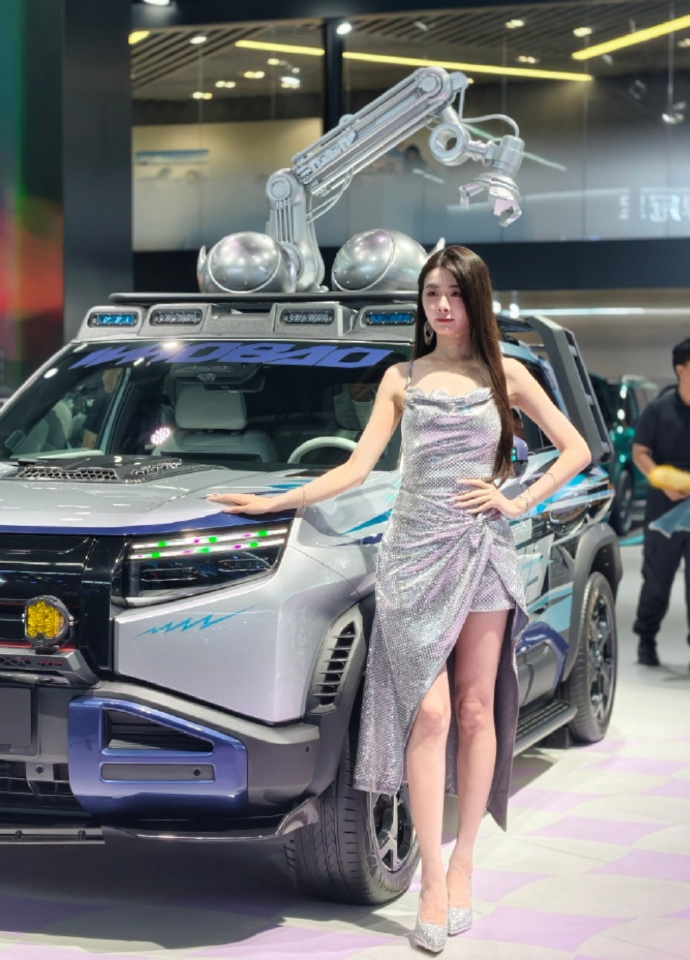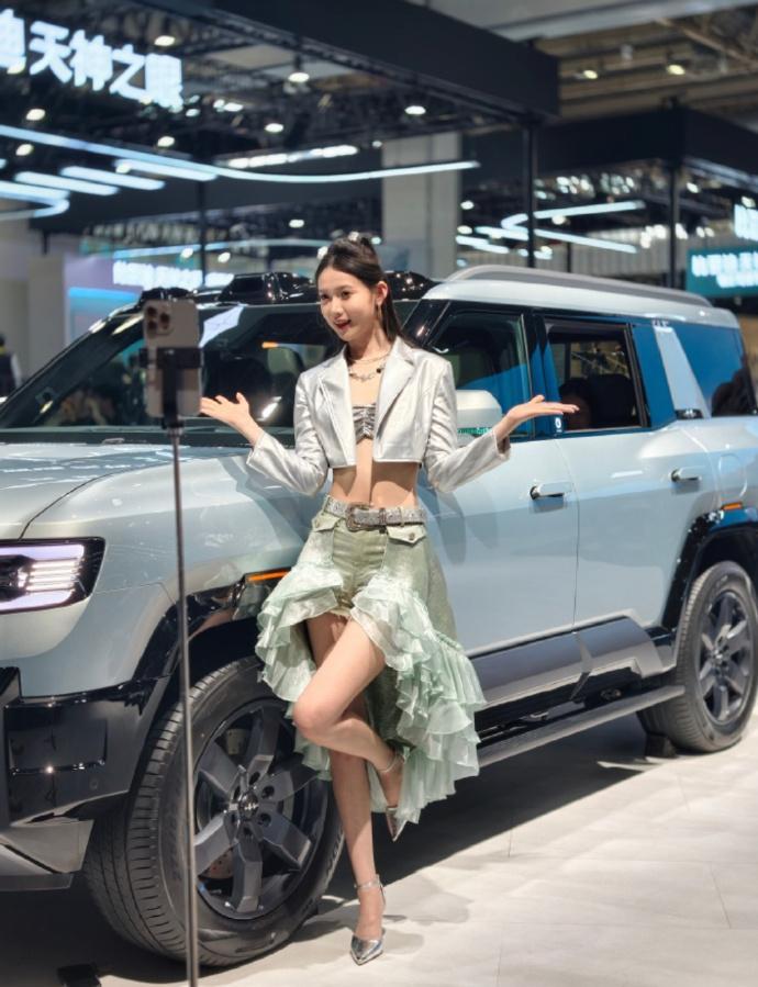 不同于很多展台追求吸睛的网红款,比亚迪四大品牌的服装各有格调,却又完美呼应车型气质,这大概就是“衣品见车品”最好的诠释吧。王朝系列的层叠裙摆藏着山水意境,压褶工艺和车身线条同频。海洋系列的网纱与钉珠,像把海浪和珊瑚穿在身上,灵动又清新。腾势的服装透着精英阶层的优雅,和鲜花专区相得益彰。方程豹的机能风穿搭,把硬派与灵动揉得恰到好处。