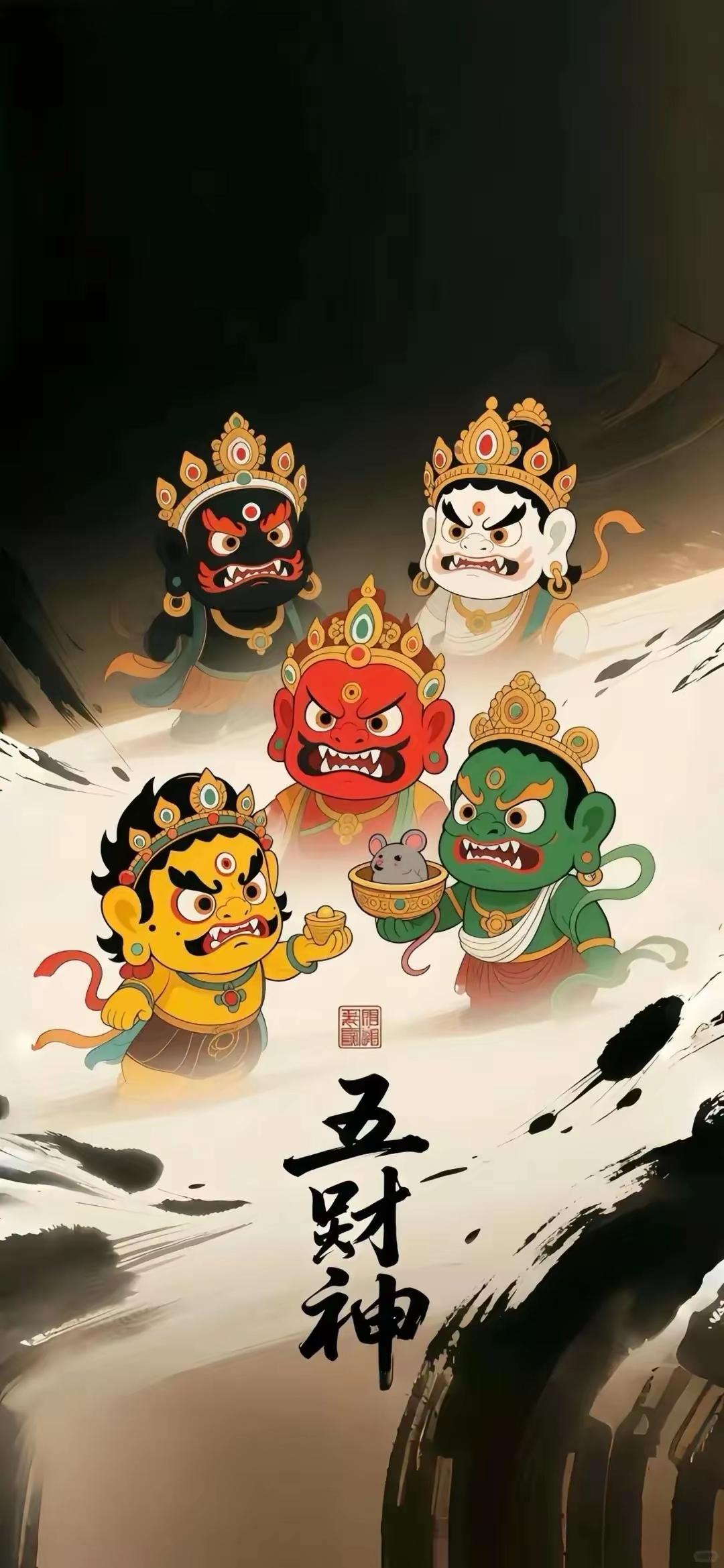 手机壁纸~五路财神护佑,鸿运当头、四方纳福;猛虎坐镇,大展宏图、前路坦荡;貔貅衔