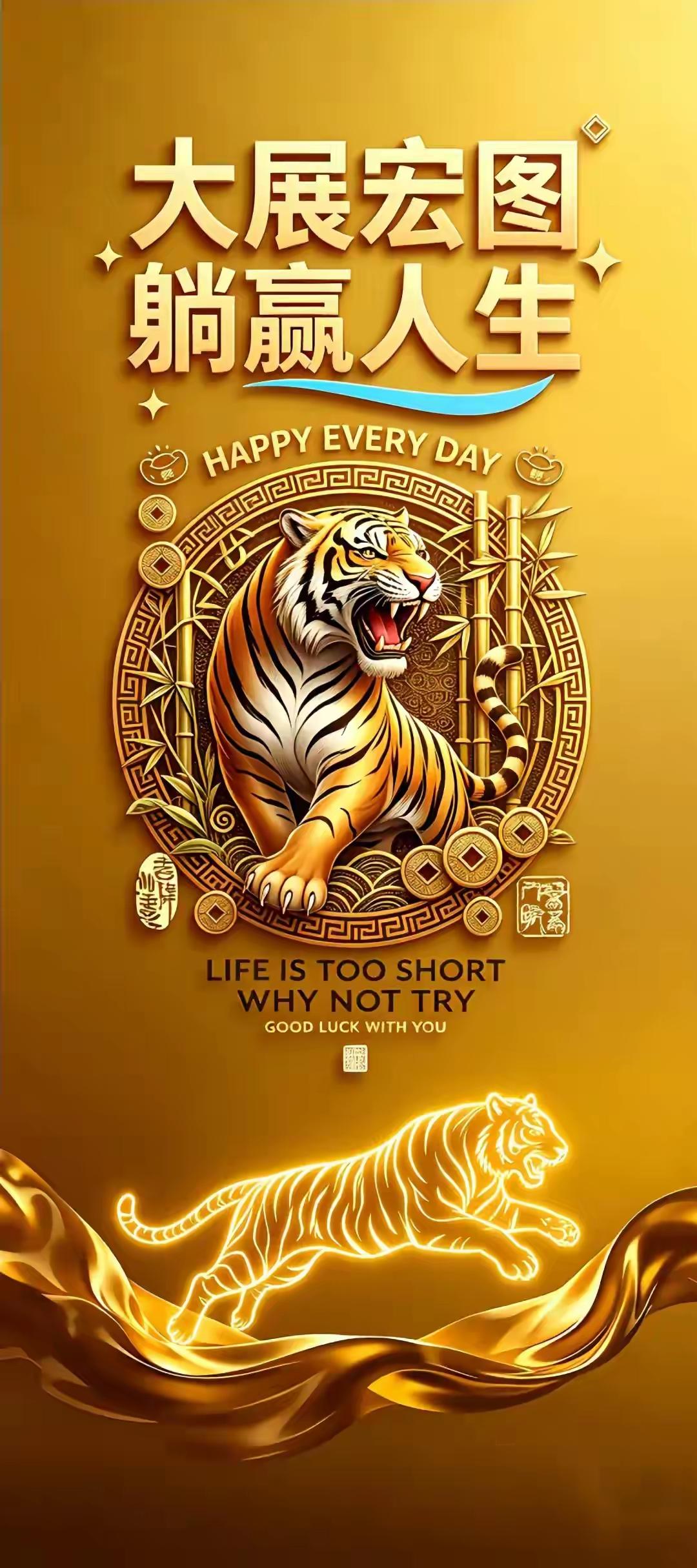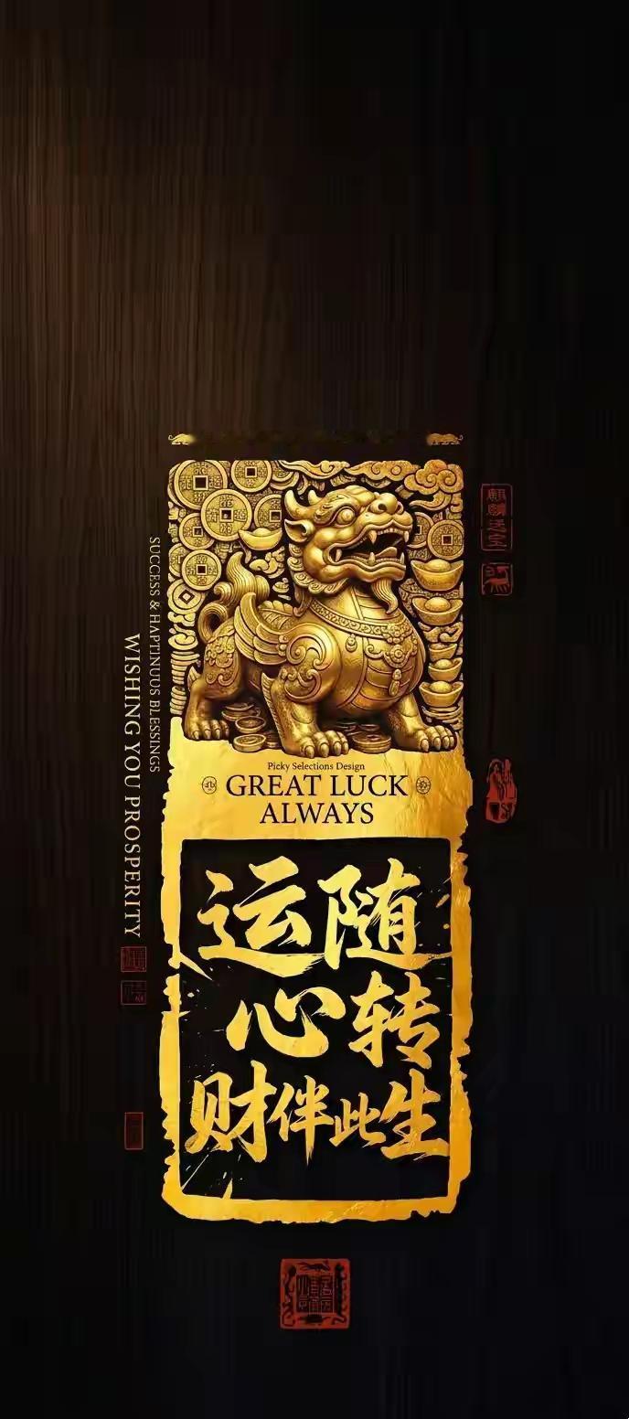 手机壁纸~五路财神护佑,鸿运当头、四方纳福;猛虎坐镇,大展宏图、前路坦荡;貔貅衔财,运随心转、财伴此生