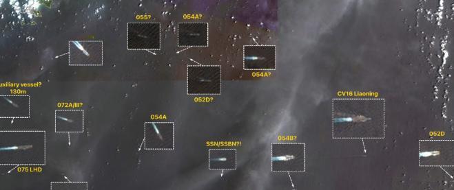 所以这次联合军演对我国的意味非常浓烈,图2是一名国外博主发布的南海某区域的卫星图片,在该图片中显示中国目前已经集结了庞大的水面战斗群。