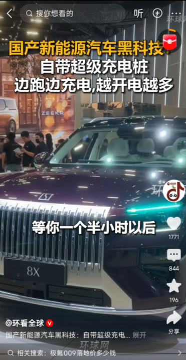 至于“深圳到广州一个半小时充到80%”,我拿计算器按了按:两地140公里左右,按正常电车跑100km/h,140km至少耗20度电。可普通家用车电池才60度左右,出发要是20%电(12度),跑完别说80%,能剩5%都算运气好。除非它根本不是纯电,而是插混或增程,一边烧油一边发电,这才勉强说得通。但这就跟“自带充电桩”八竿子打不着了——充电桩是外接电网的,不是拿油桶当插线板。