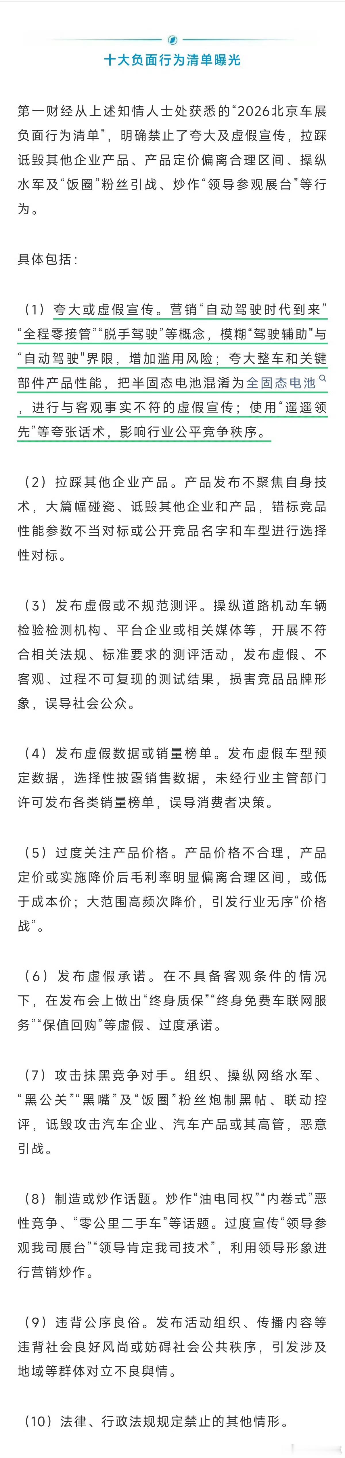 好!监管部门从上层开始引导,对这10种负面行为加以曝光和禁止。无论是相关车企,还