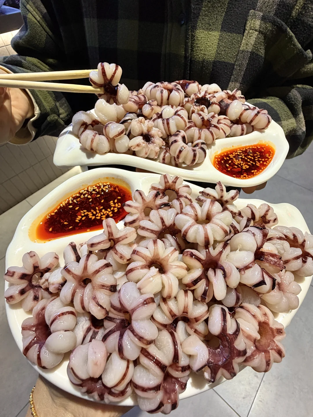 下了高铁直奔这里!感谢本地人指路~这个樱花鱿鱼我真的吃不腻🥹蘸酱汁咬一口香辣q弹真的绝了,吃完还打包了两份回去。