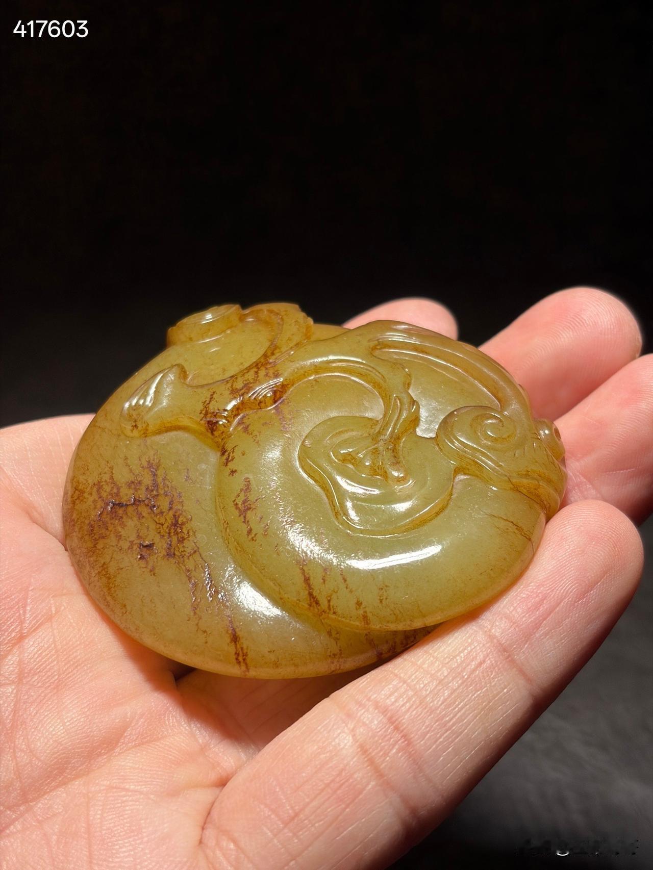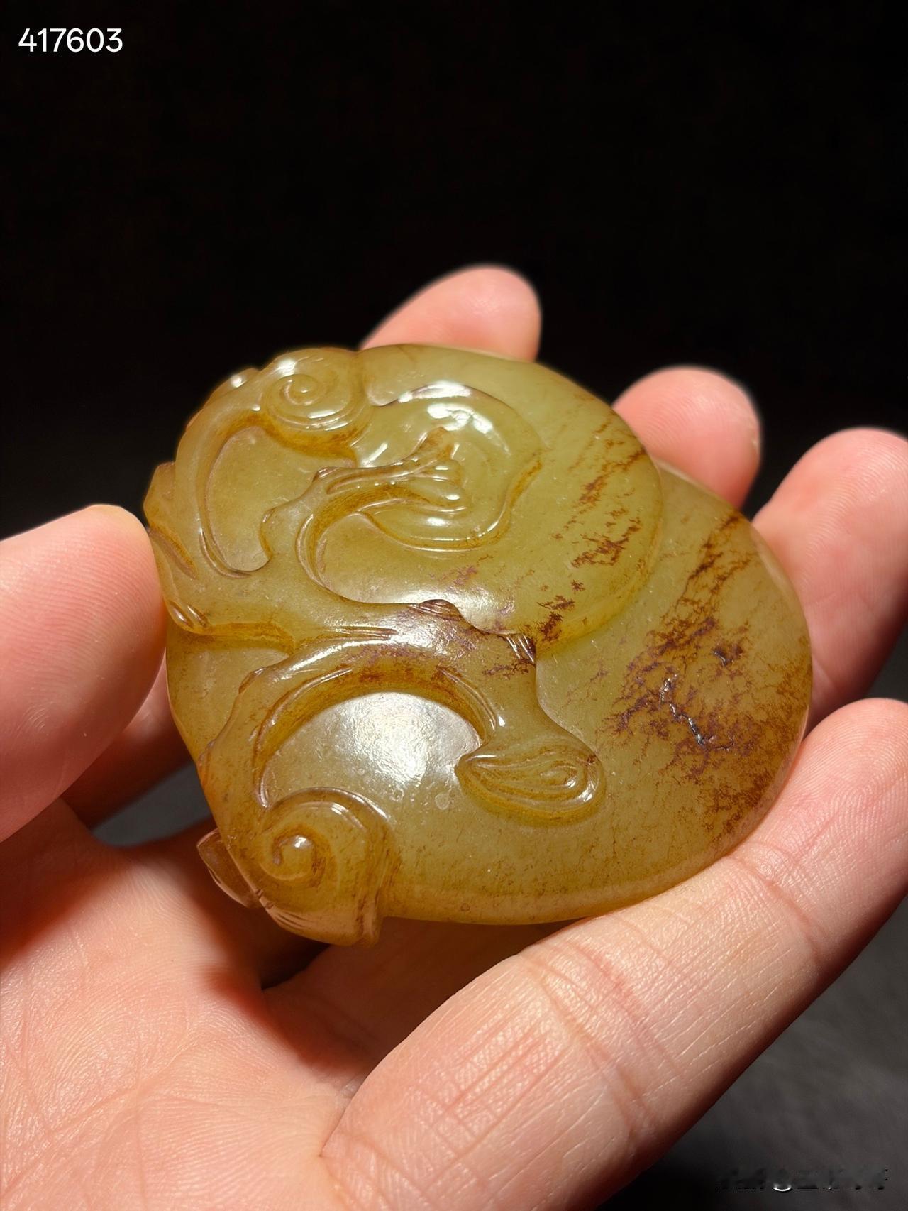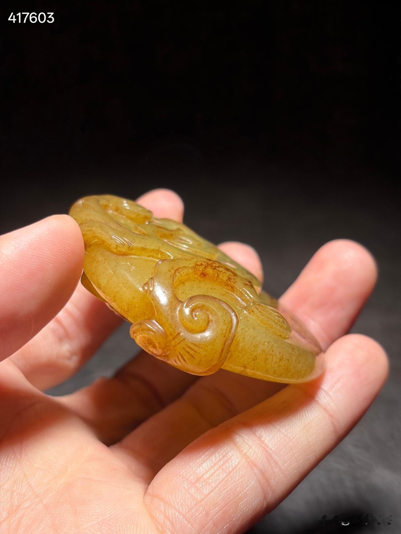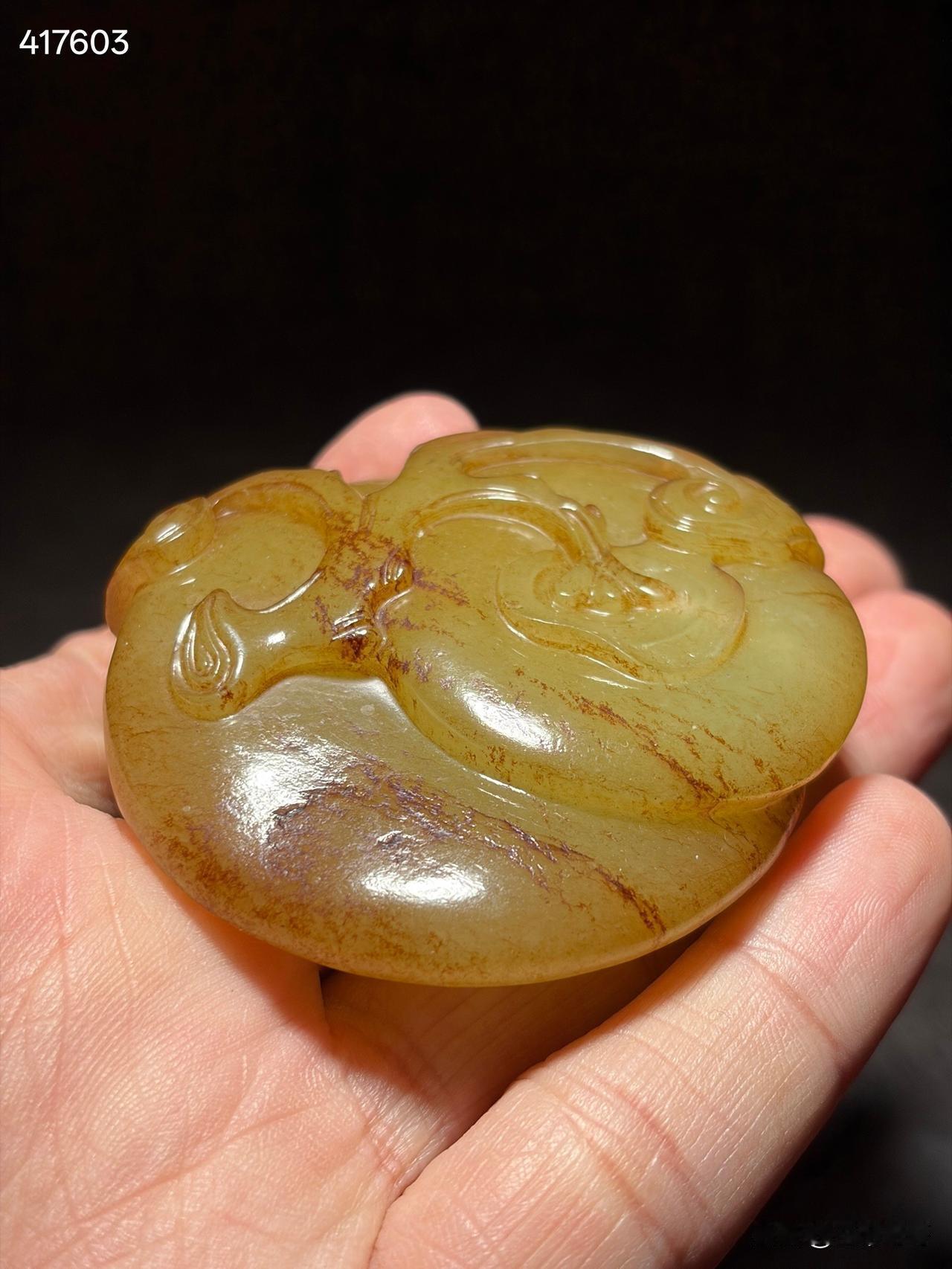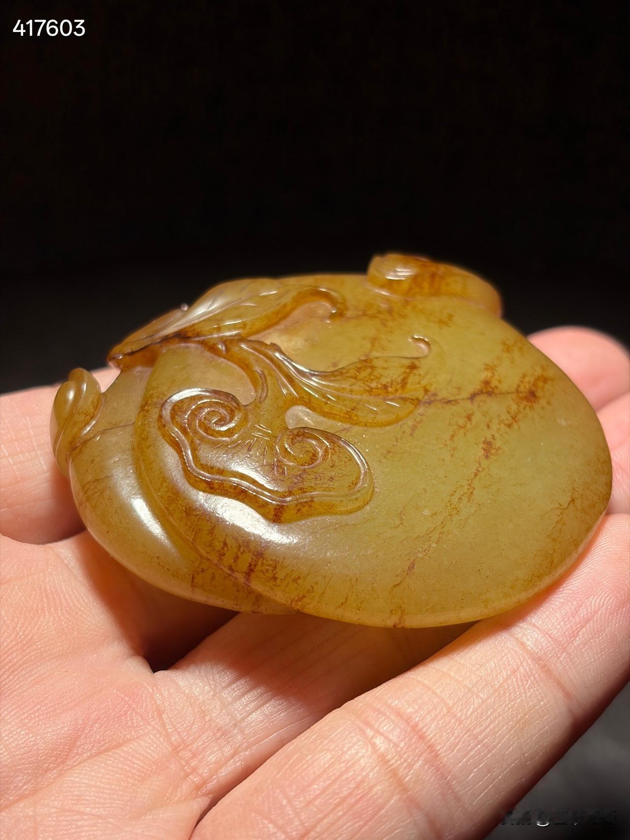 清和田玉黄玉事事如意雕件 尺寸6×5.6×1.6厘米,重量77.5克