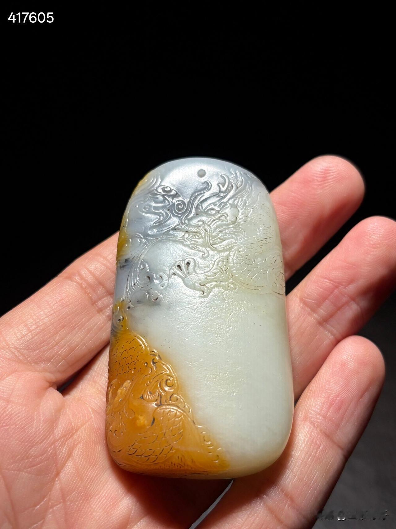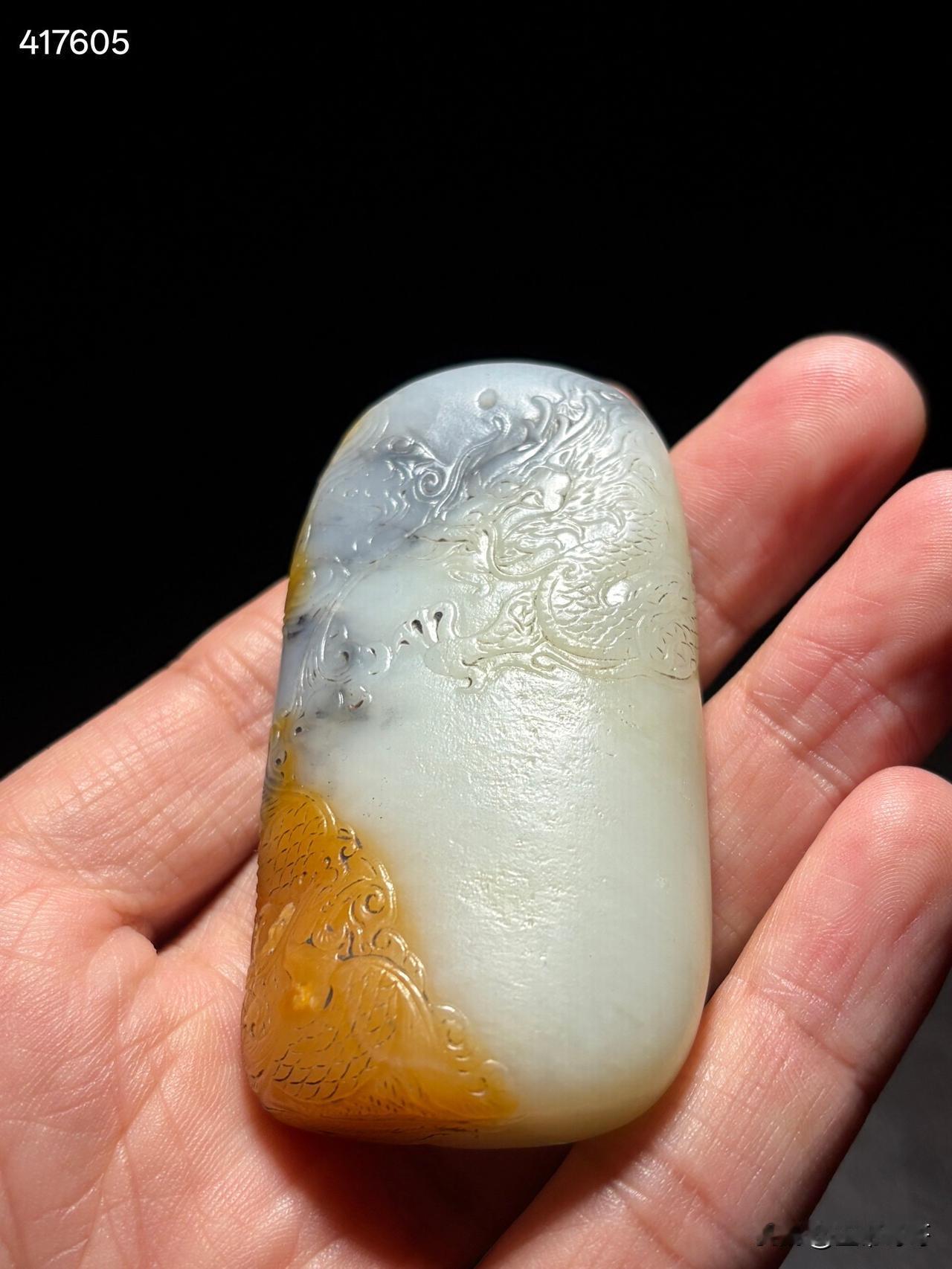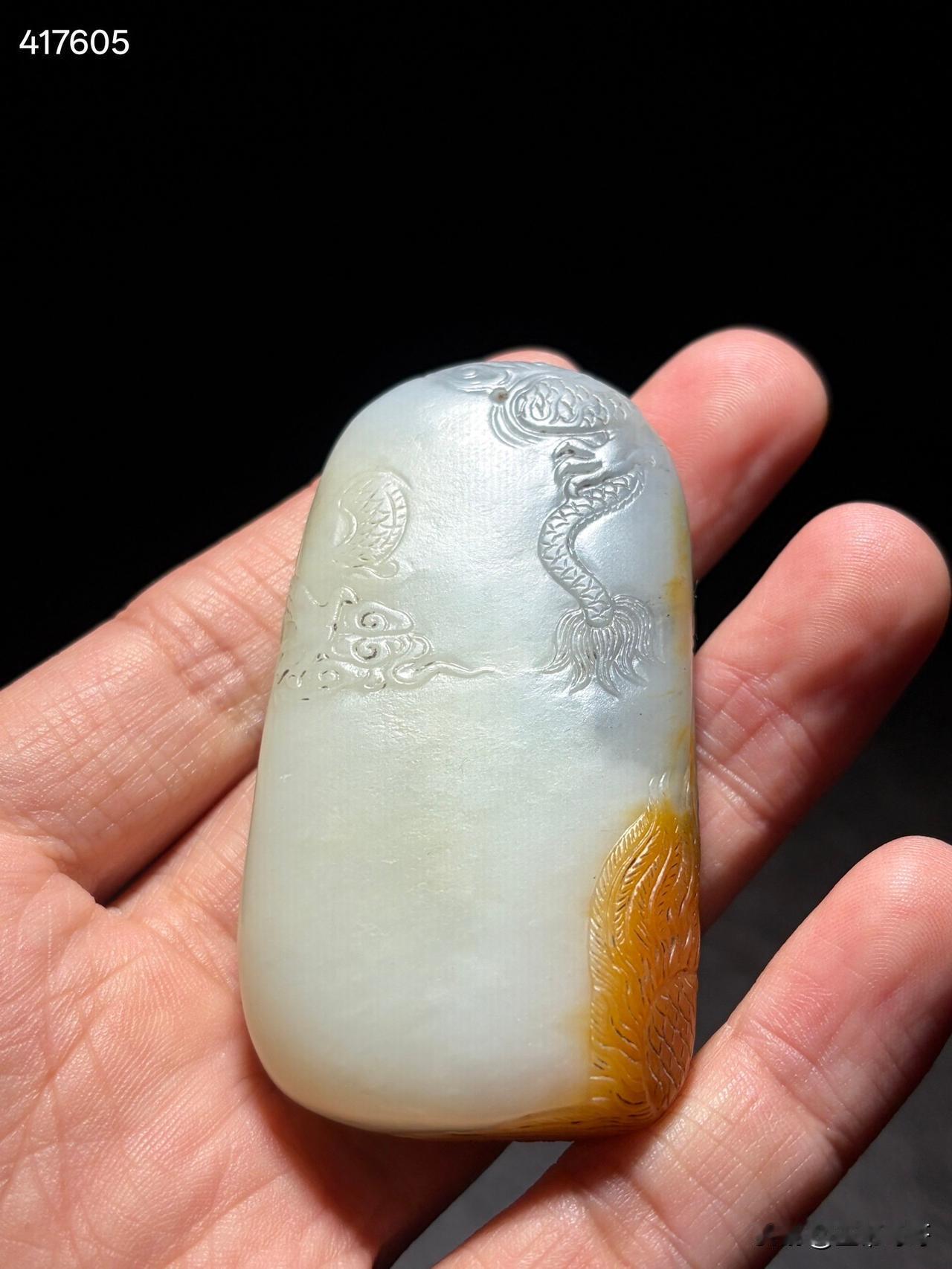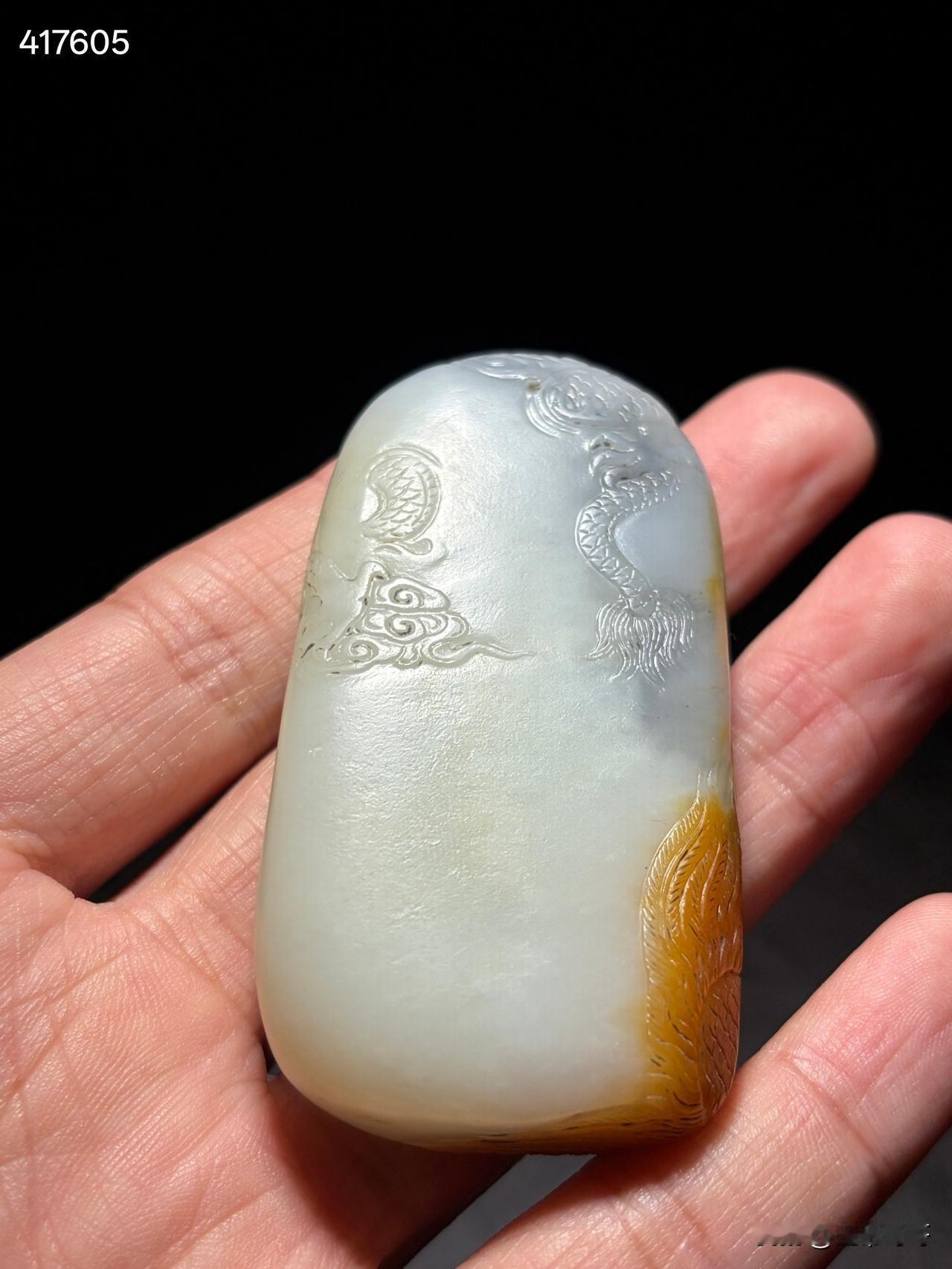 和田玉籽料龙凤纹雕件 尺寸6.8×3.6×1.68厘米,重量77.5克
