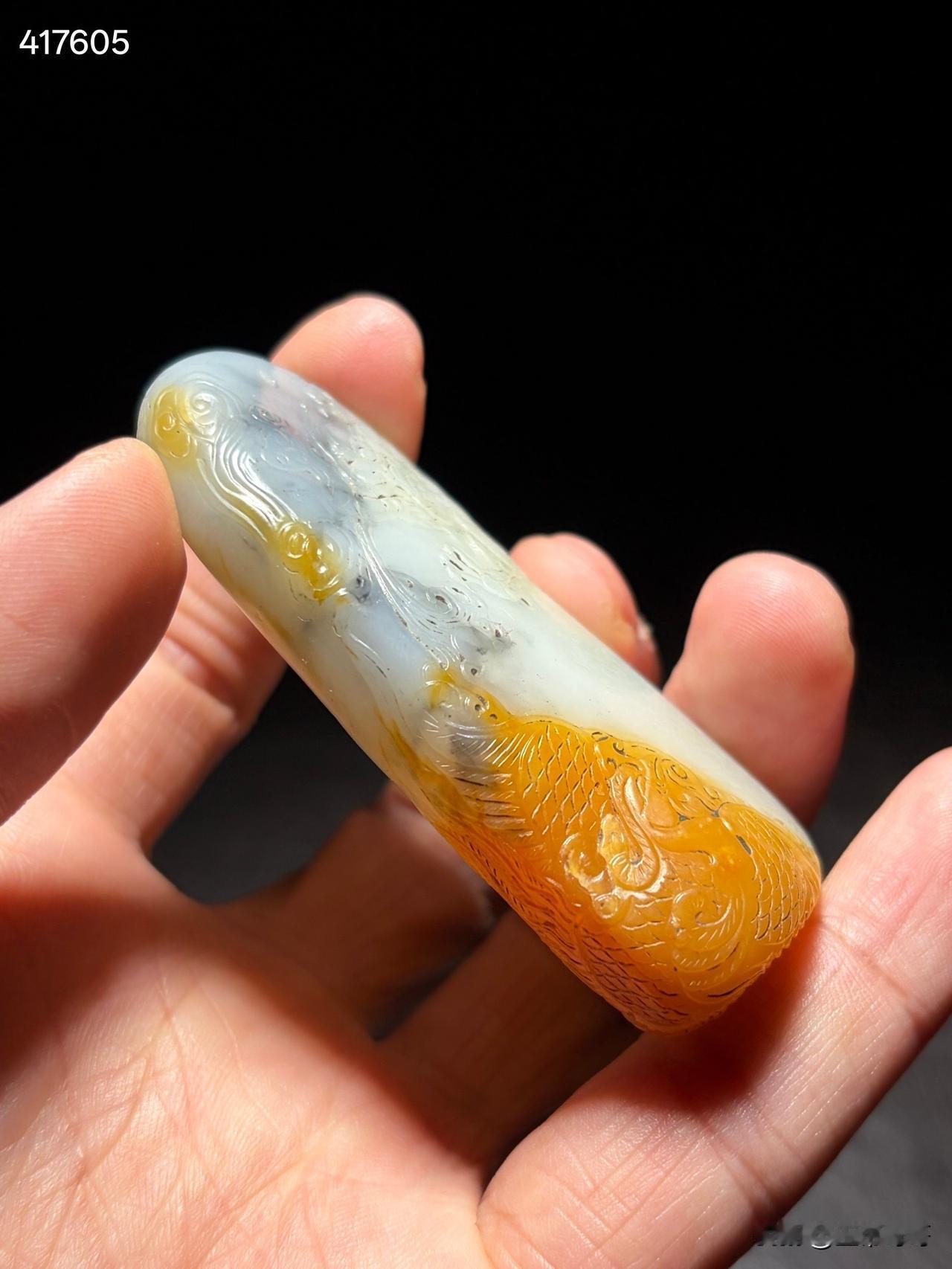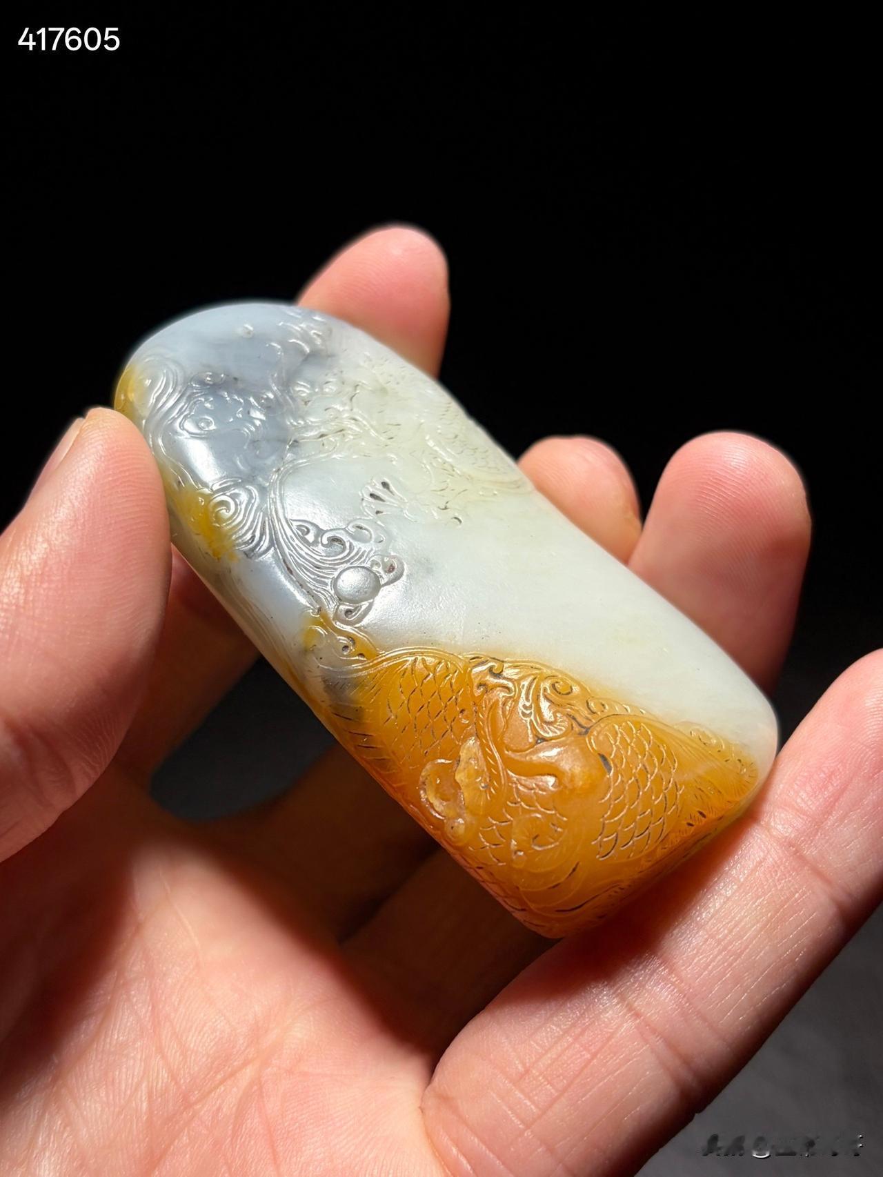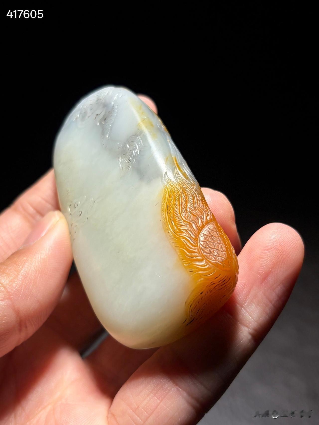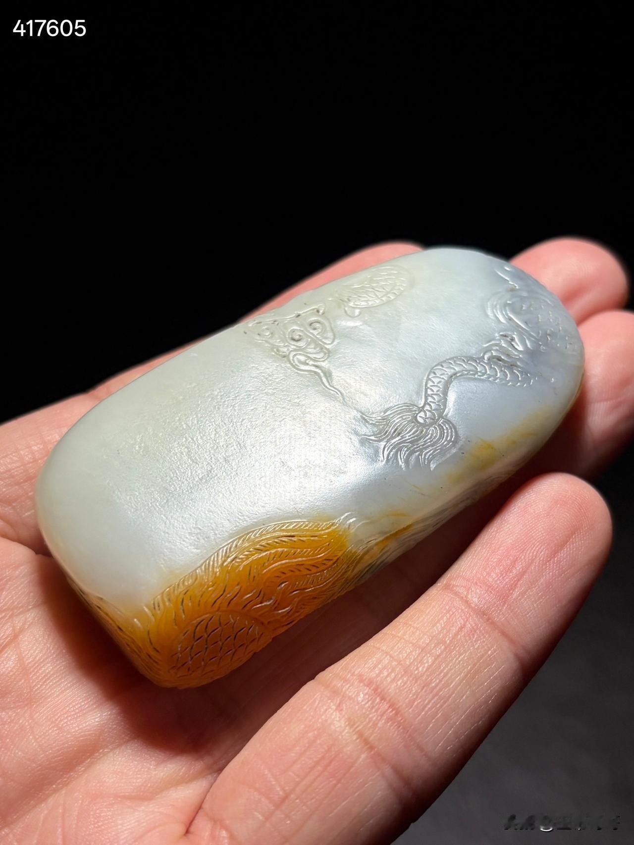 和田玉籽料龙凤纹雕件 尺寸6.8×3.6×1.68厘米,重量77.5克