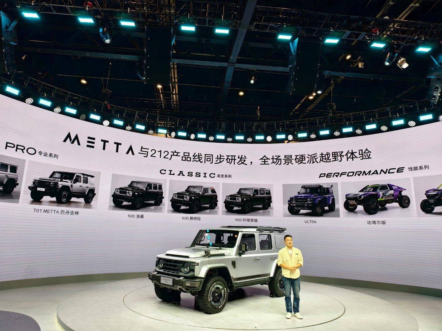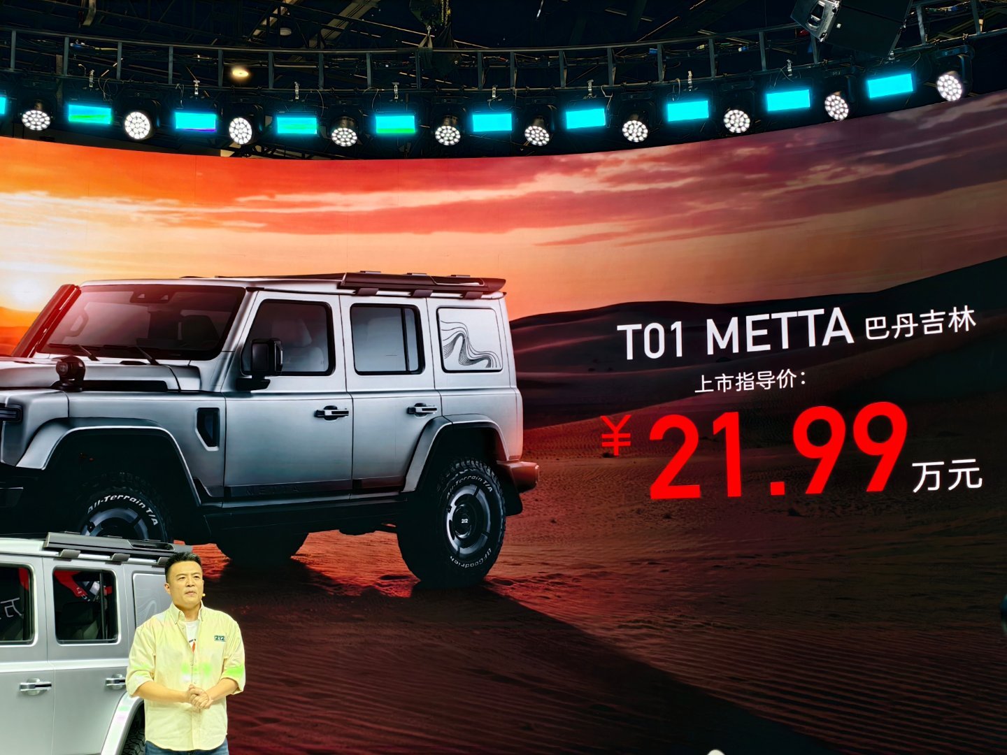 今天整好发布了个新车,T01 metta,标准版18万起,巴丹吉林版就是高配版本21起,旁边很多越野玩家玩打赌猜价格,都猜错了,之前最低的猜21起,可见市场太卷了,下决心要抢客户,还有官方改装的更复古收藏的版本。听下来核心就是:复古情怀+方盒子硬派+加上性价比。