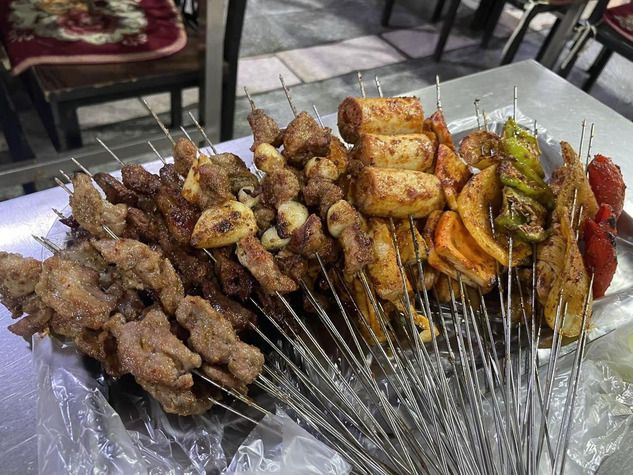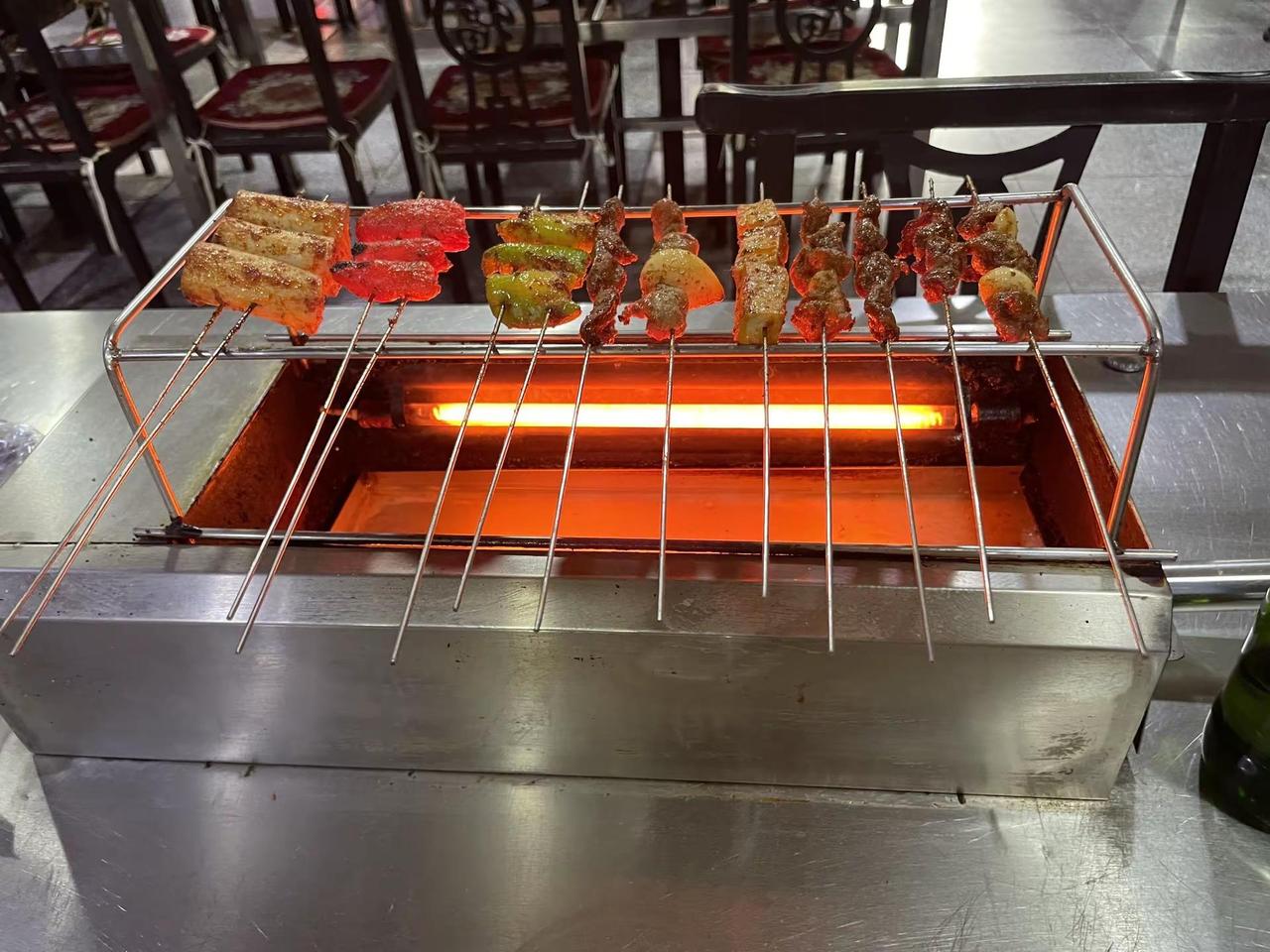 吃淄博网红烧烤二嫂烧烤 淄博烧烤二嫂烧烤 这他妈1块钱1串,5串起点。一串这么大,我来的早就我一个也没参照物。点他妈的这么一堆,你想撑死我!!!!!!这什么物价,这!!!!!!这么大串!!!!!!淄博烧烤我服了!!!!!!扶墙走出去的!!!!!!跟着网红来打卡点,竟然没踩雷。隔壁桌大姐请客吃的这个,说她上学时候就吃这家,现在她都退休了。说人最多时候,想吃上能排一两个点。我真是幸运儿,我看诺大的店就我,我以为撑不住要倒闭了呢,原来是来得太早下午4点多来的还没上人。吃完时候陆陆续续也在上人。串还行,味道也就那样,量是真无敌!!!!!!