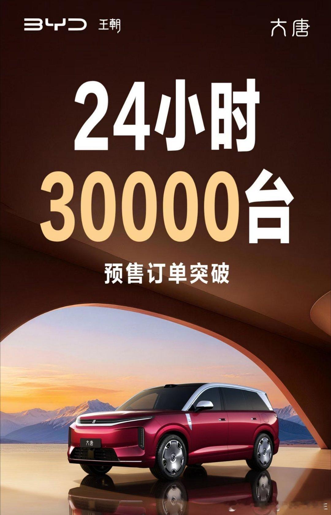 比亚迪大唐EV,预售订单突破3万台。这车现在是预售阶段,还没有正式上市,预售价格