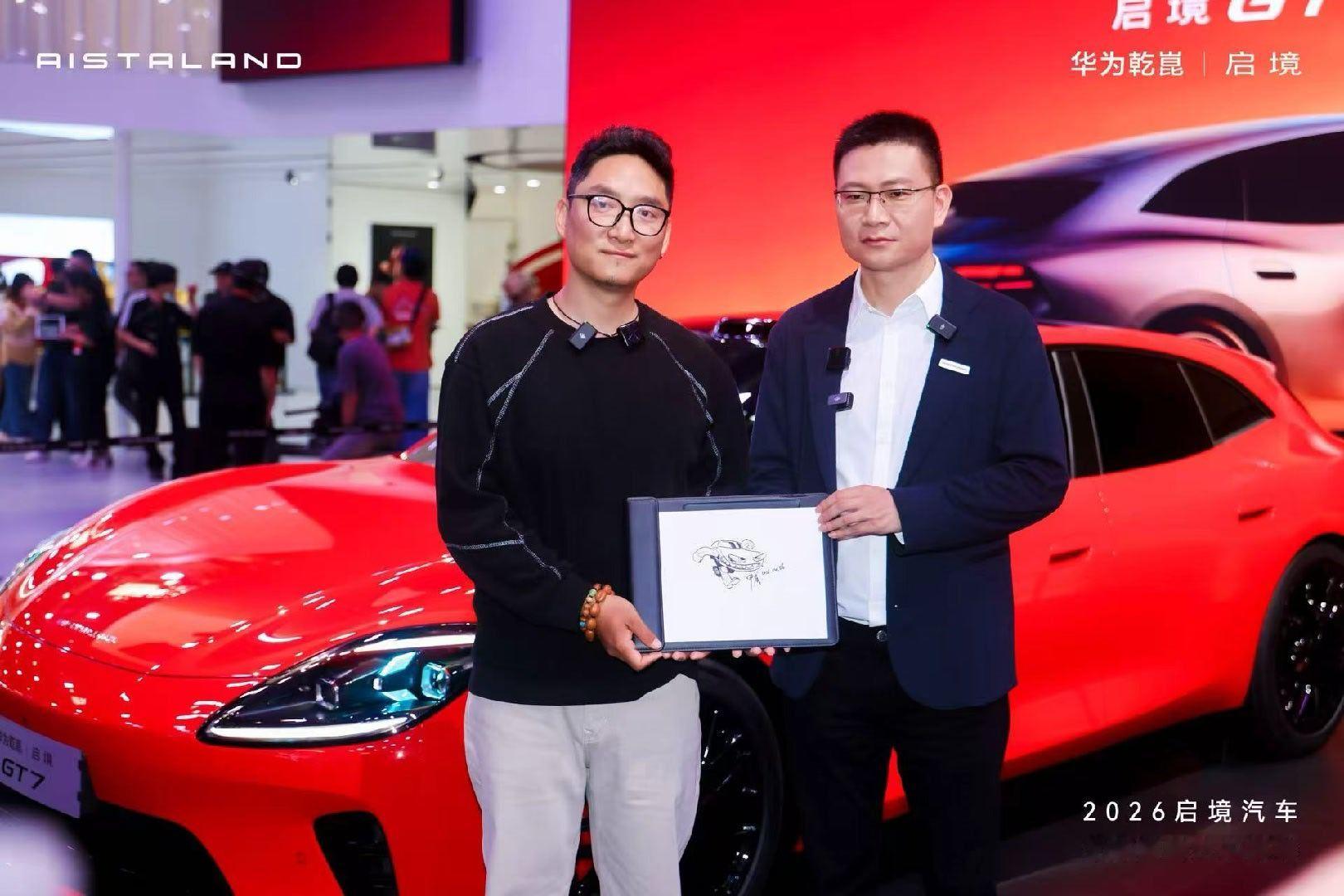 2026北京车展正式启幕,各界大咖齐聚现场,启境汽车展台人气持续走高。被网友称作“魔童爸爸”的哪吒核心设计师申威现身启境展台,瞬间引爆现场人气,车展秒变打卡围观现场。现场他与启境GT7产品总经理轩伟深度对谈,近距离品鉴启境GT7猎装轿跑身姿,搭配HUAWEI XPIXEL双百万像素灵眸大灯,锋芒质感拉满。沉浸式领略新车设计后,申威心生灵感,主动提出为启境创作专属IP形象,现场为启境汽车即兴创作漫画,展台现场瞬间引爆众人围观。大佬不语只是一味炫技
