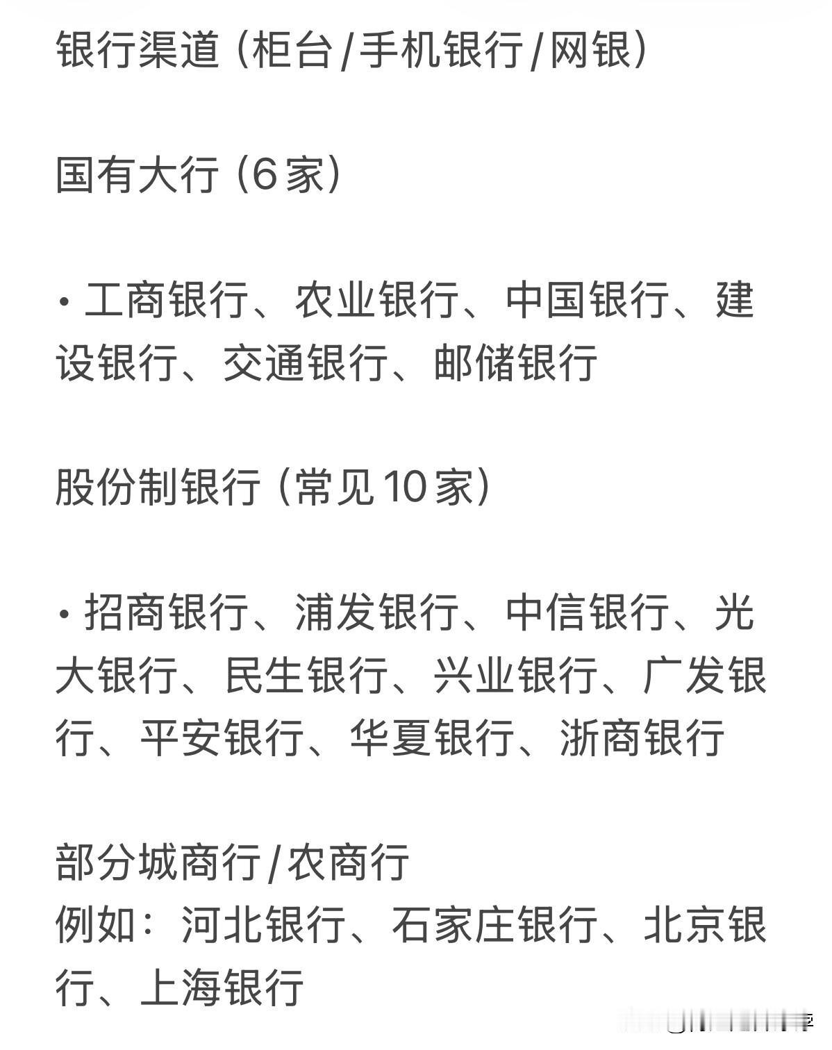 一般哪些银行和交易所可以买到?我已经给大家整理好了,大家可以截图保存。