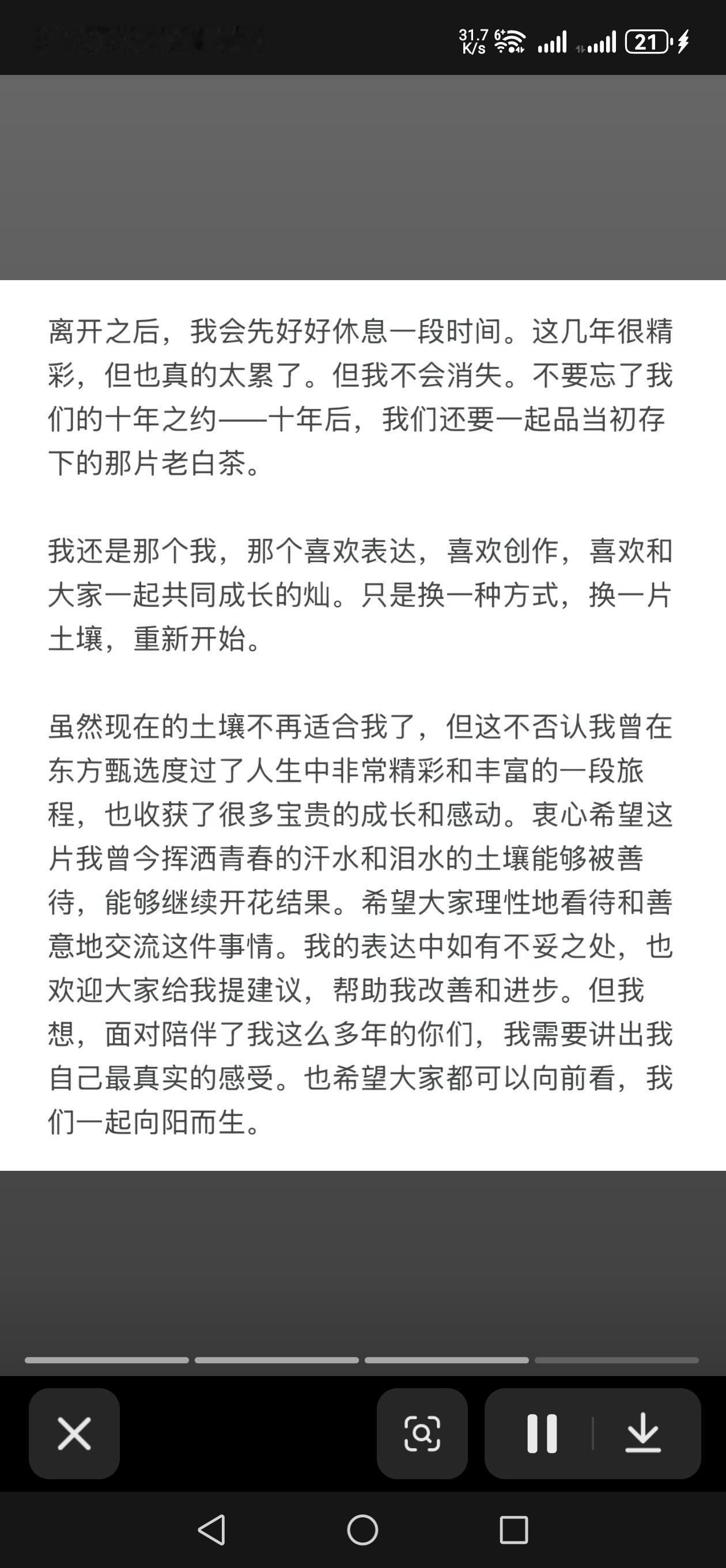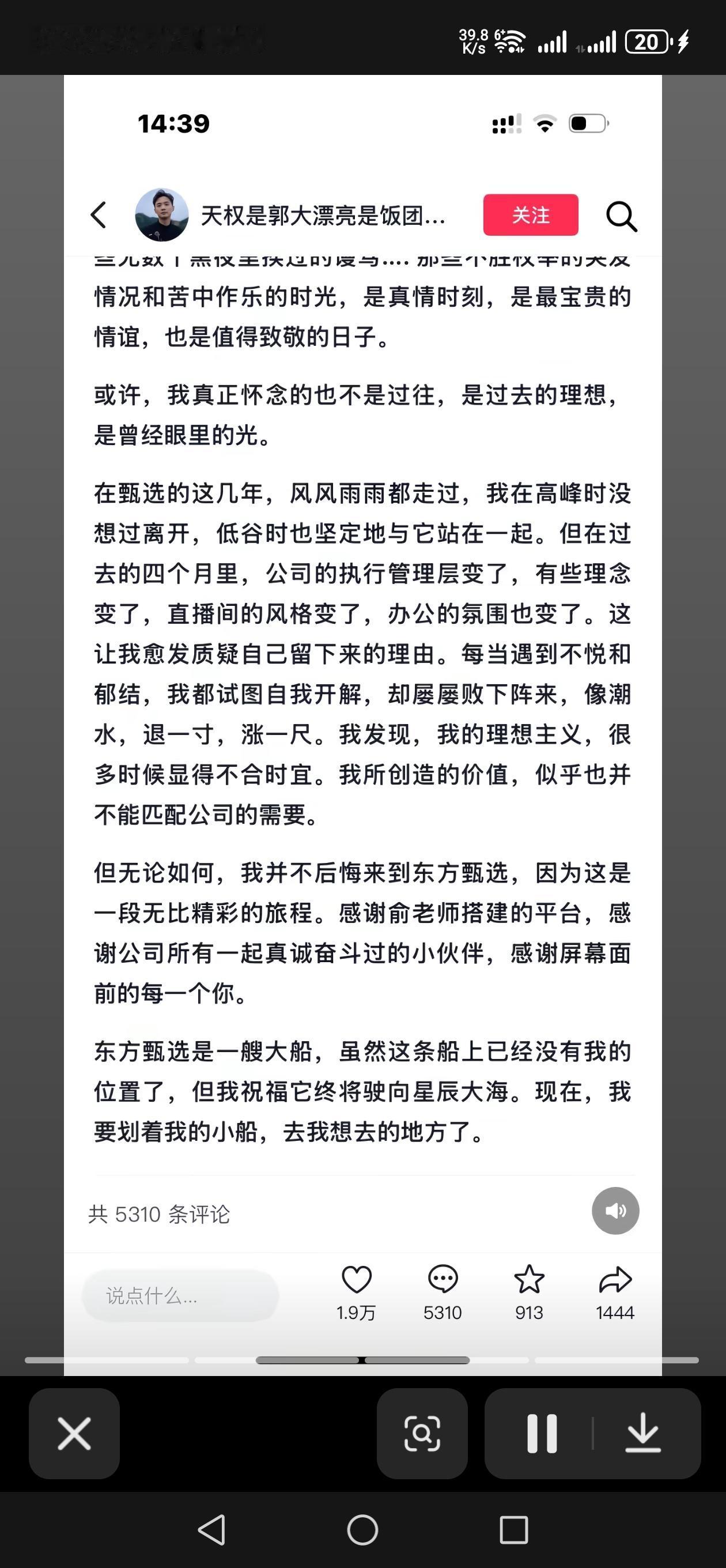 我觉得最可笑的是,他们都说当年加入公司多好多好,直到现在,人走茶凉,都不敢说一句真话。他们应该真正感谢的是董宇辉,他们能有那么多粉丝,能受到那么多人的关注,能在这里捞到人生第1桶真金,全都是拜托董宇辉那石破天惊的一举成名。他们全都沾了董宇辉的光,都是董宇辉在这家公司以爆发到被打压离开一系列变故的受益人。他们内心里门清的很,没有董宇辉,这段经历不过是南柯一梦。