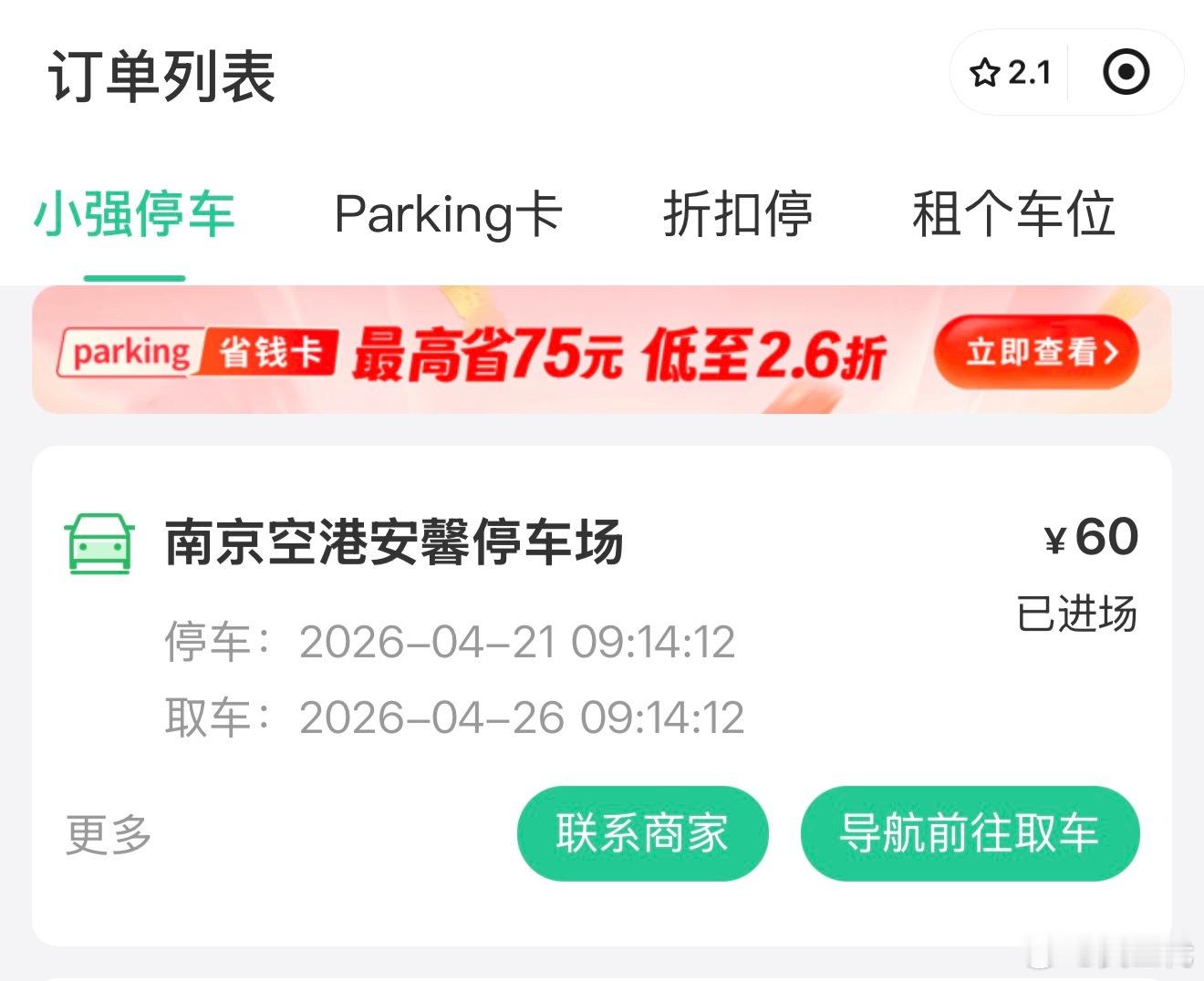 出差五天终于到南京了,自从朋友推荐小强停车后,出差成本直线下降。停五天才60块钱,搁以往我停机场的停车场高低五六百