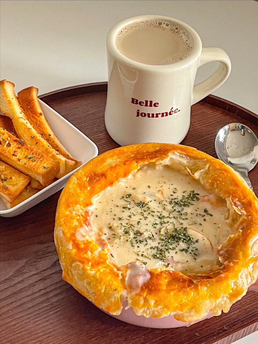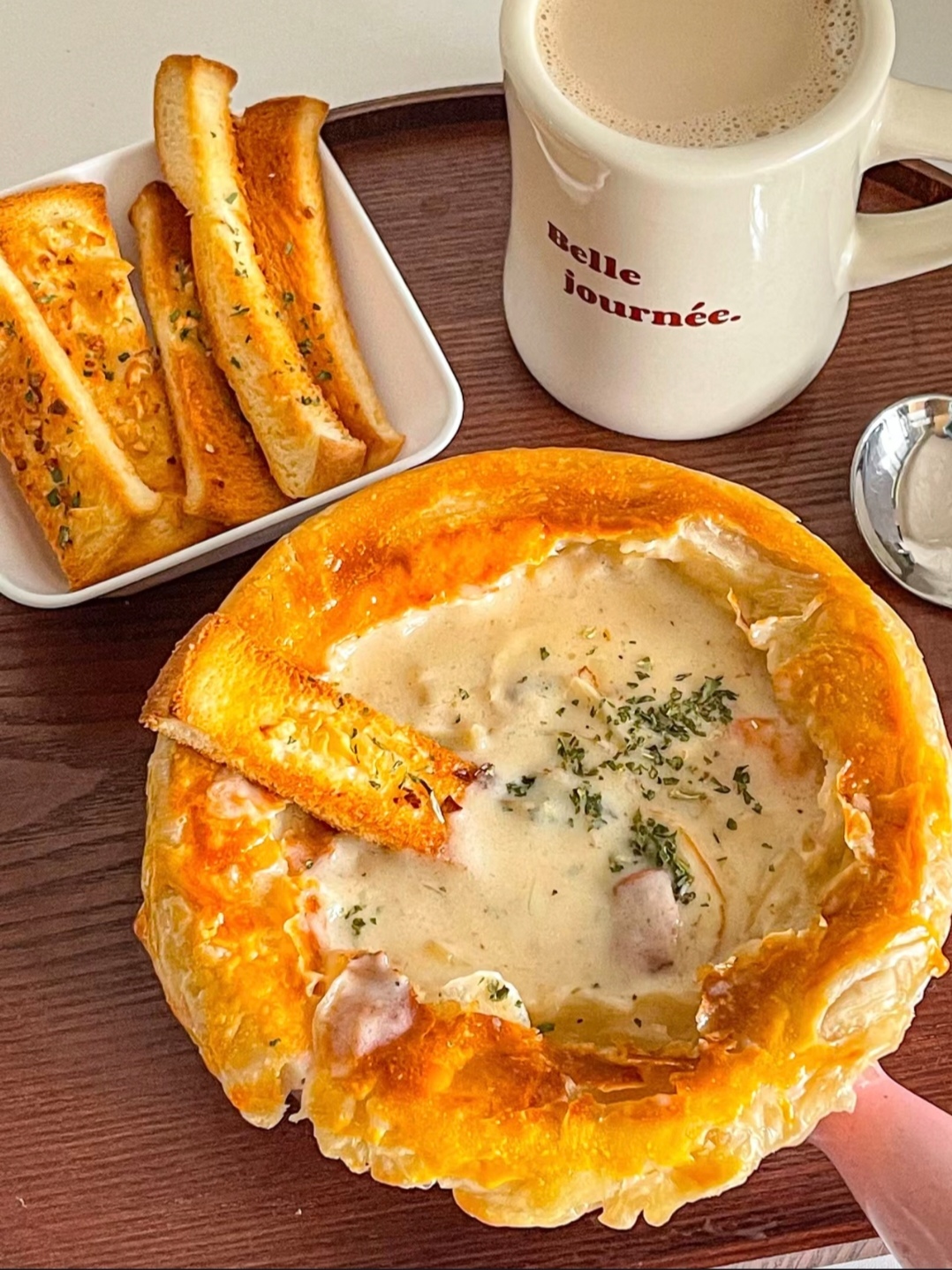 酥皮奶油蘑菇汤,那是一道宛如梦幻般的美食,每一口都能带给舌尖无比的惊喜。