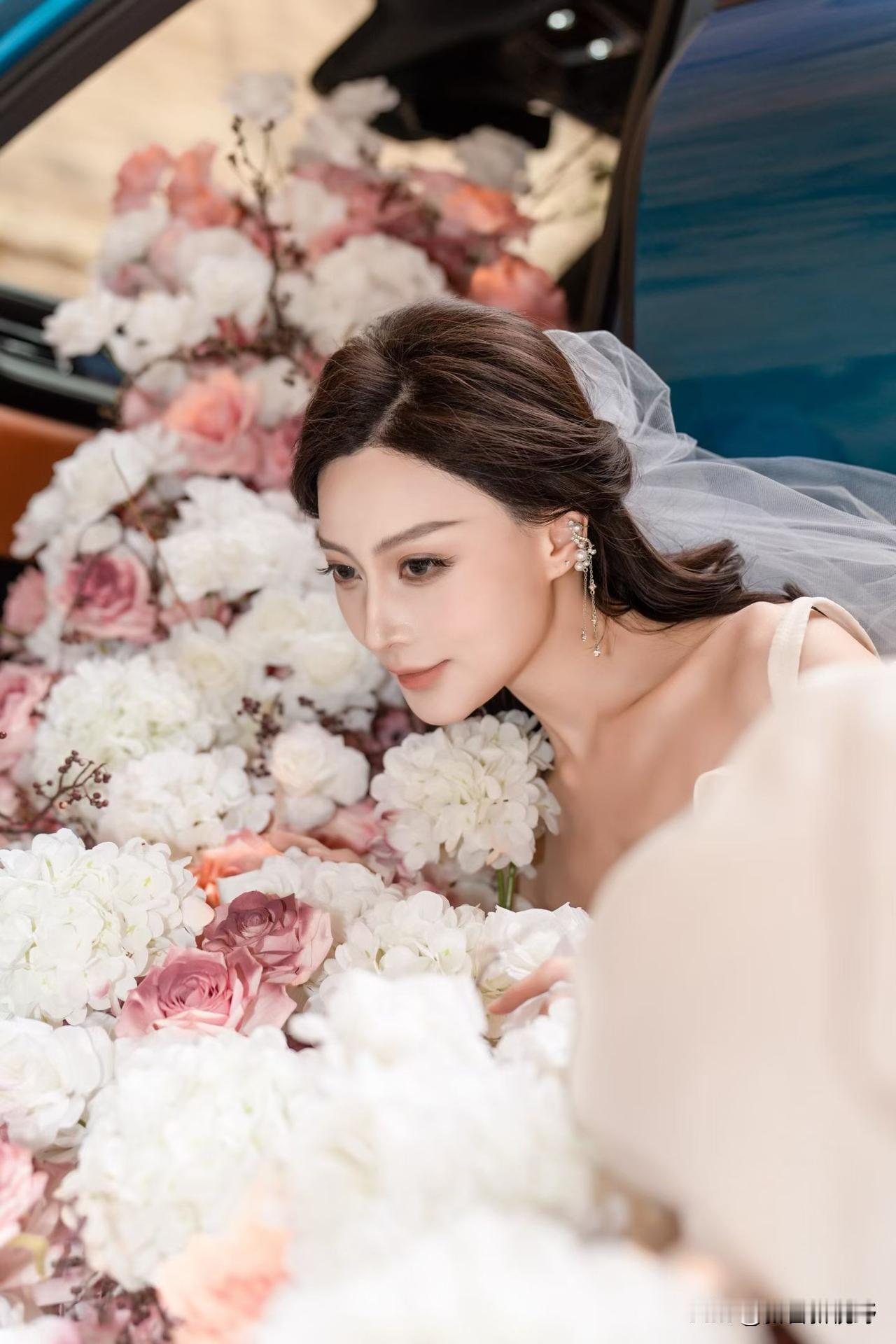 梦幻婚礼花海,新娘轻靠花丛,唯美动人!花海拍照穿搭推荐 女生户外拍照如何摆姿势