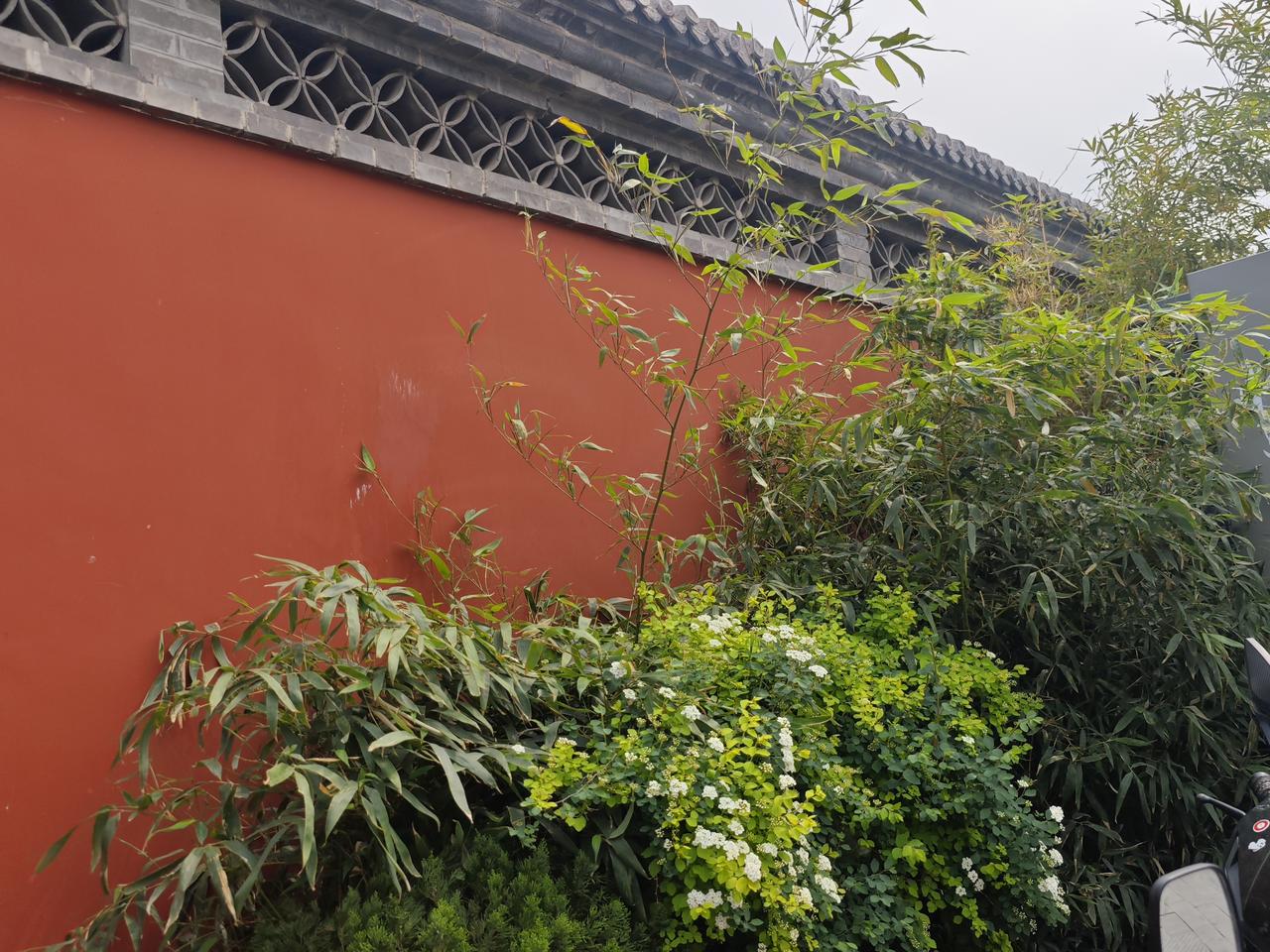 沿着胡同慢慢走,光影在延伸的红墙上移动。脚下青砖承载岁月,墙头草木映衬白塔,古韵未远,烟火可亲。