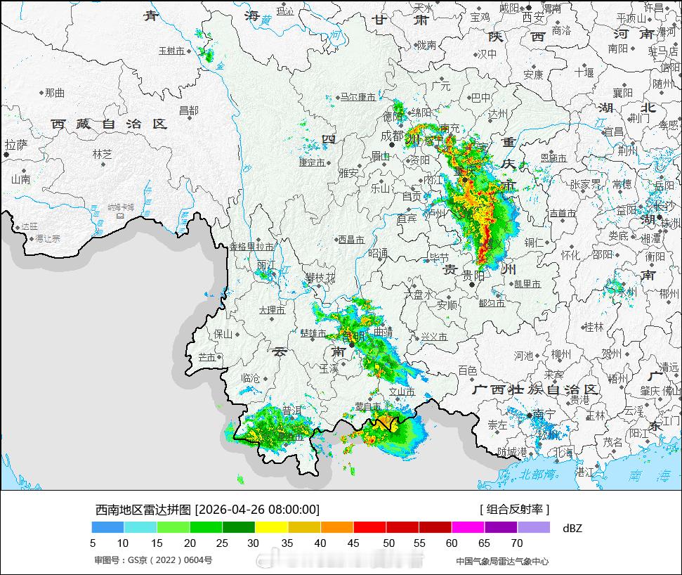 气象观察团暴雨【南方新一轮强降雨过程从西南地区发展】雷达看,四川盆地东部 重庆 贵州部分地区有较强回波,对流雨明显。从图2看,今天,西南地区东部低空有大量暖湿气流北上,是暖湿急流主导的暖区对流雨,随机性强,单点降雨猛。而之后的三天内,降雨的环流形势会逐渐变化。