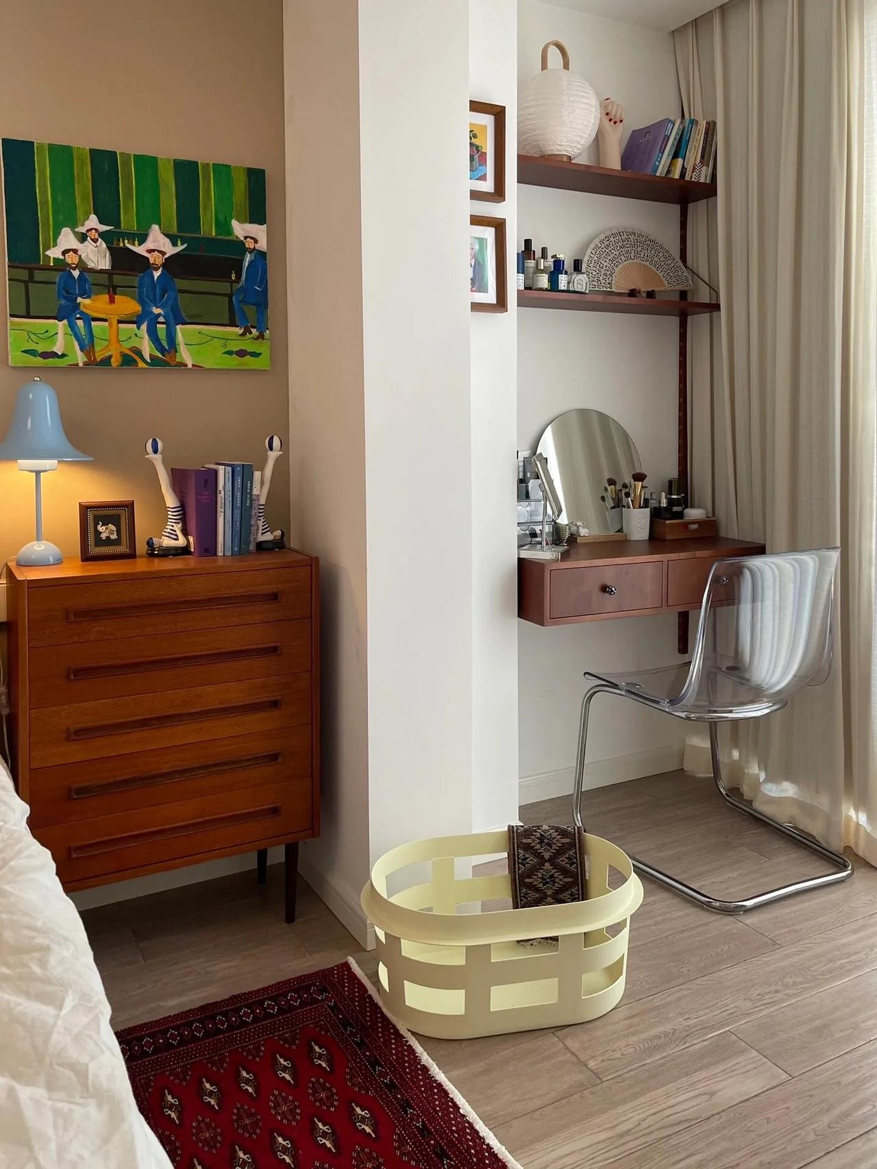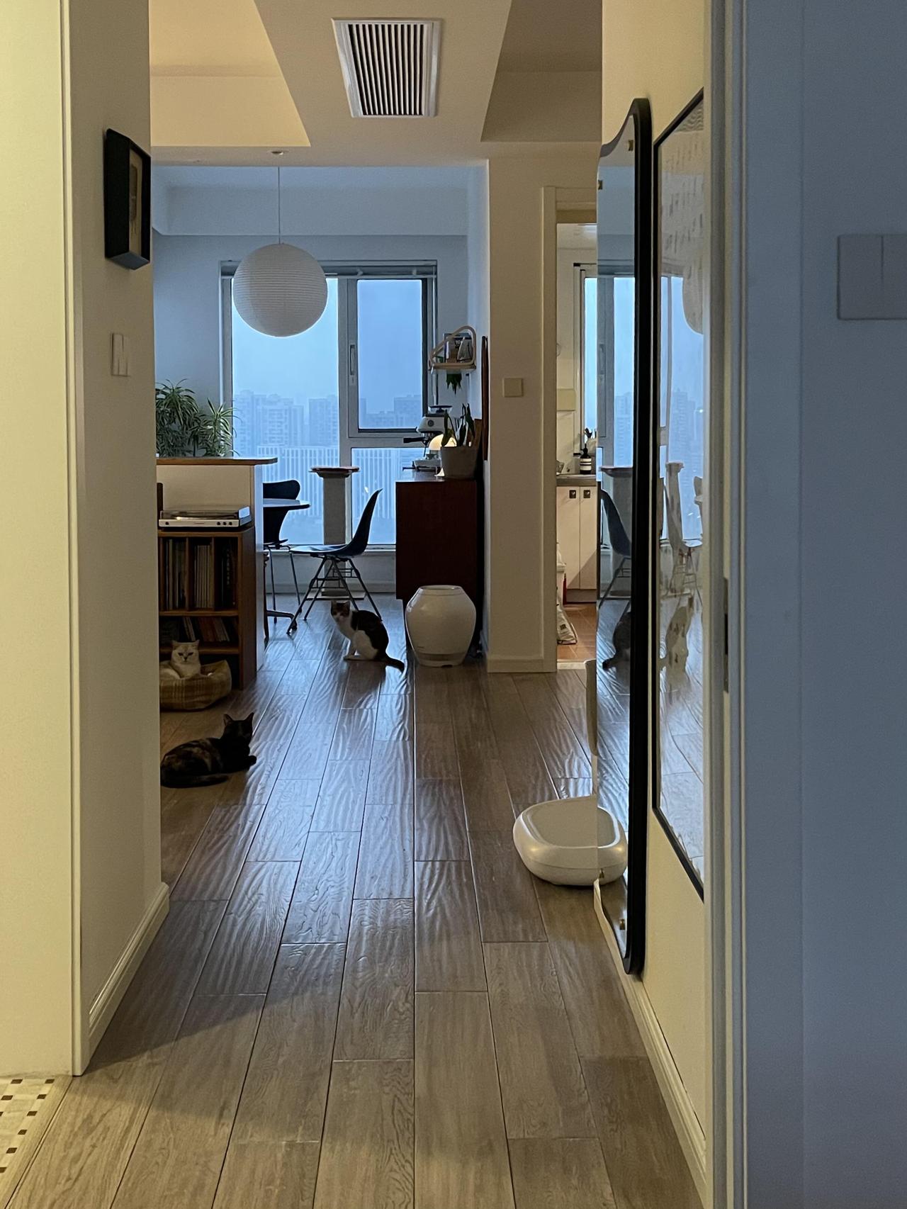 改造上,我做了一些减法,一个人住,用不到三室,索性把书房和客厅打通,空间一下子敞亮起来,空气对流也更顺了,小的卫生间是暗卫,改成迷你衣帽间——反正我也不需要两个卫生间。