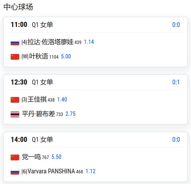 持外卡参赛的叶秋语将对阵4号种子佐洛塔廖娃;