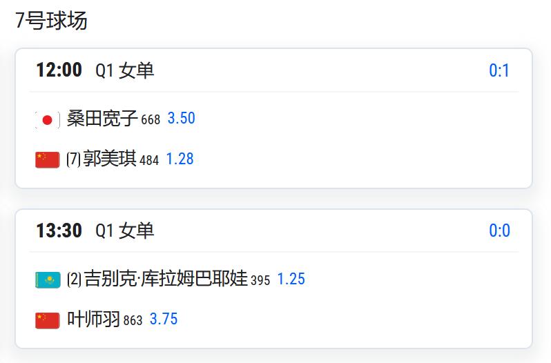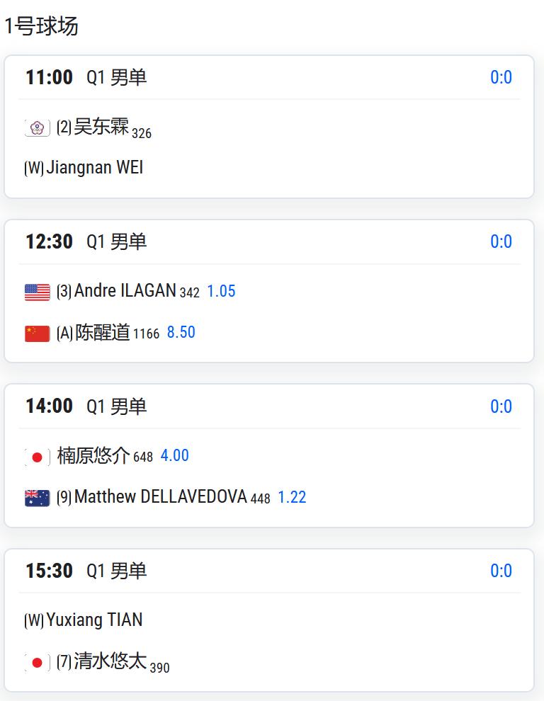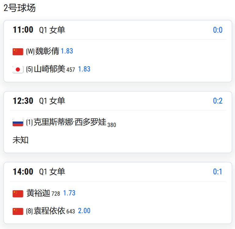 持外卡参赛的魏彰倩将对阵5号种子山崎郁美;