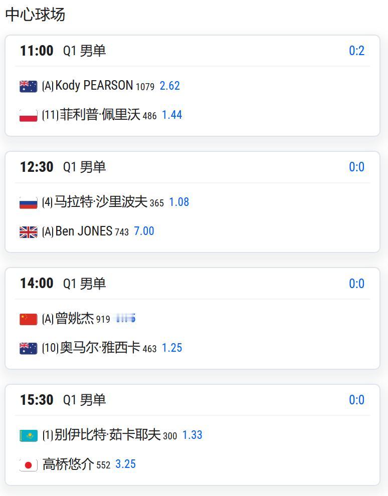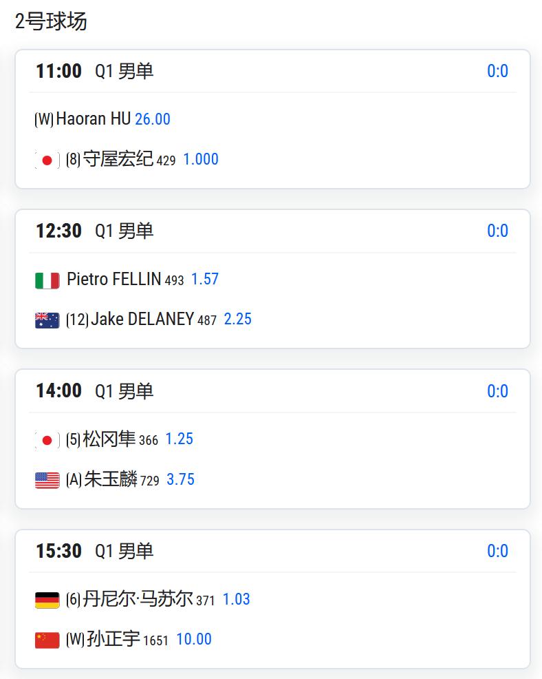 持外卡参赛的孙正宇将对阵6号种子马苏尔。
