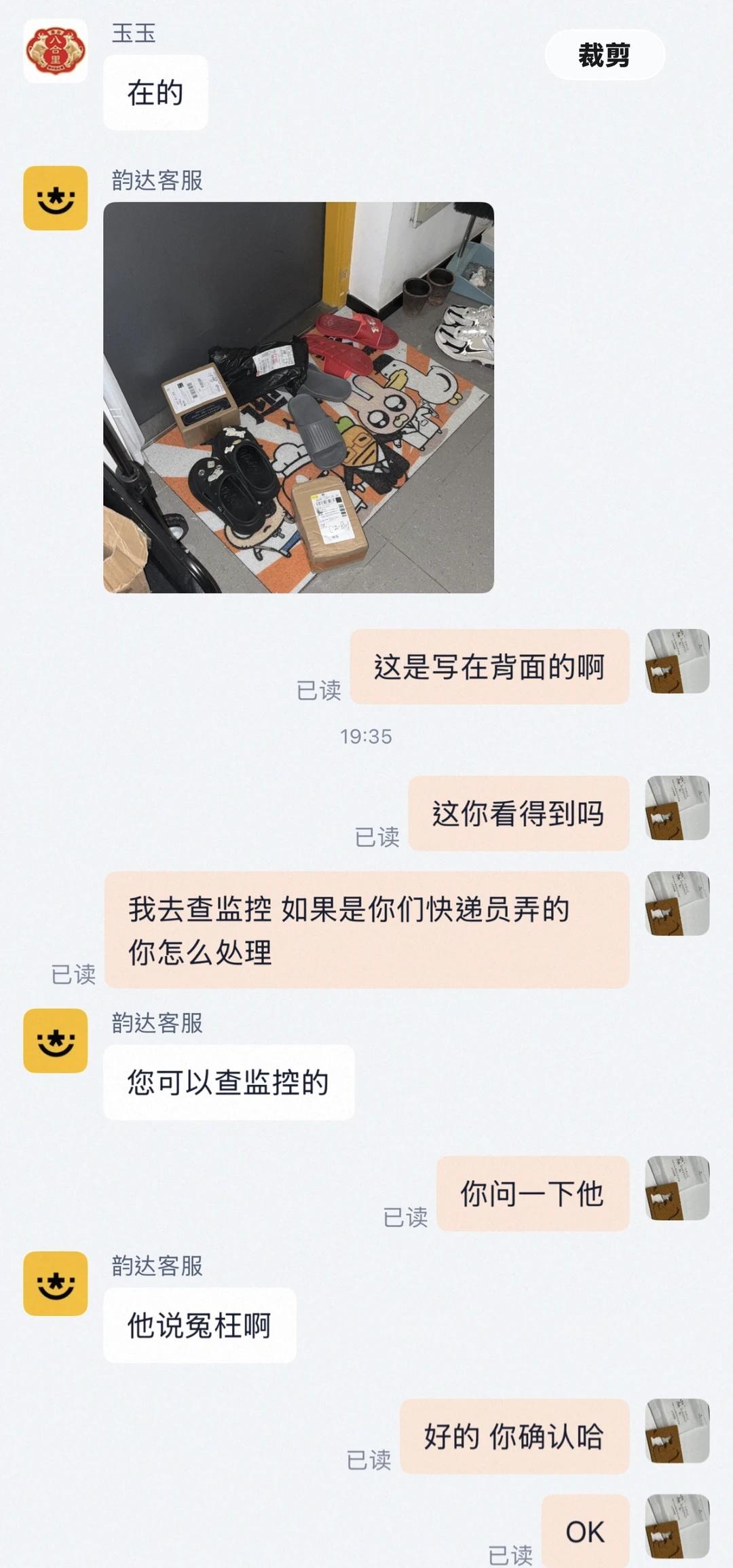 前因后果:公寓基本上所有快递都可以送上门,但是总是有一两个会被送到丰巢快递柜或者菜鸟驿站去,有时候快递柜超时还要收费,对象给这些没有送上门的快递客服都发了信息要求快递员送上门,然后下午我单独在家的时候听到了很大的类似敲门的声音,但是平常不会有人敲门,我以为是隔壁的动静,后来晚上出门吃晚饭才看到快递盒上被写了辱骂信息才联想到下午可能是有人敲门了,现在去质问买的物品的商家,现在是多方都不承认,快递员说自己冤枉,后续该怎么处理?快递 快递物流 威胁人身安全