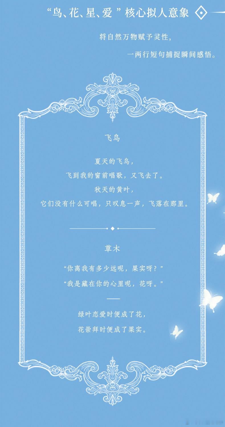 诗集以鸟、花、星、露等自然风物为载体,将天地万物赋予灵动心性,用一两行凝练文字捕捉刹那间的感悟与情思。它不设既定逻辑与核心主旨,文字背后,是泰戈尔对深层精神境界的执着追寻——以爱与和谐为终极内核,歌赞生命本真的自由、平等与博爱。
