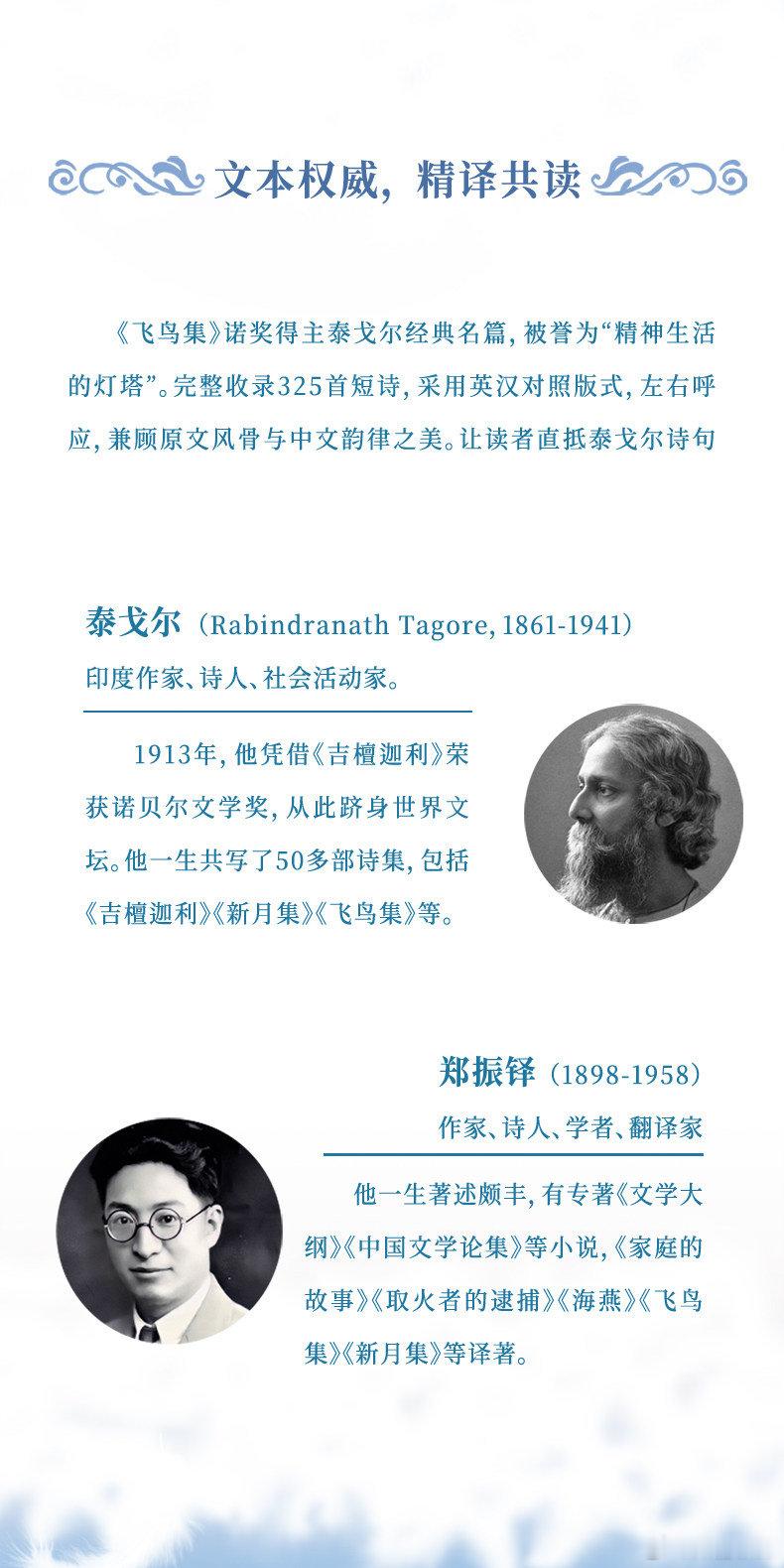 知書club 再版书丨《飞鸟集》是诺贝尔文学奖得主泰戈尔的传世哲理诗集,由翻译家郑振铎以“信达雅”笔触译介,完整收录325首无题短章,为读者构筑一座连接自然与心灵的诗意殿堂。