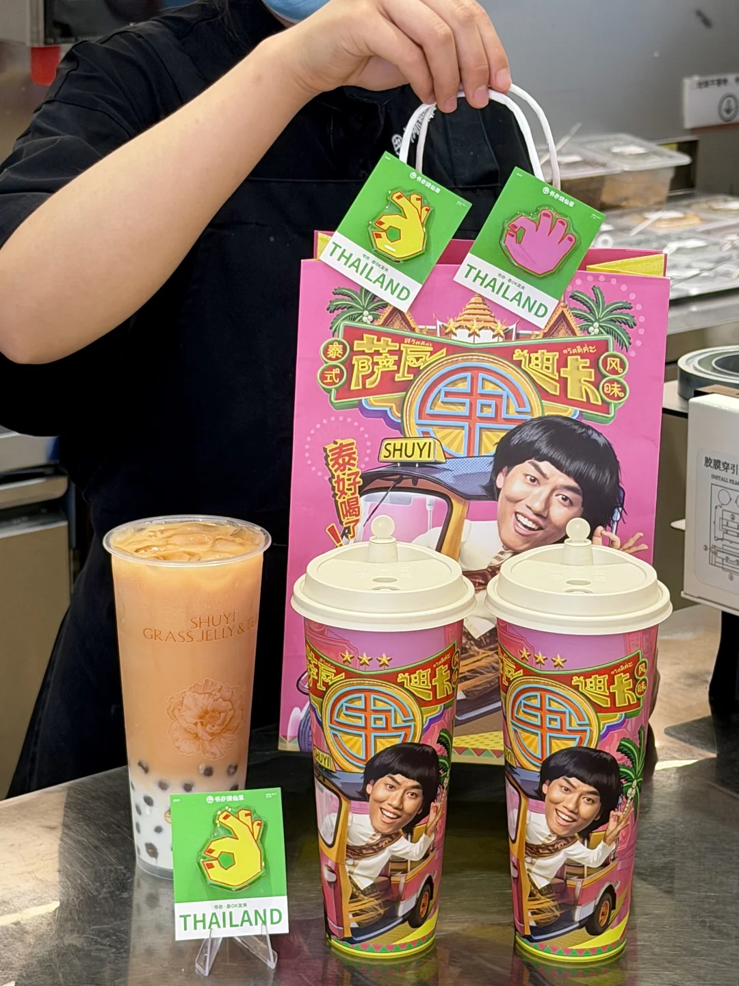 第一时间去喝了书亦新出的泰奶!糯糯珠咸法酪泰奶好喝!我点的少少糖,红茶味道很香很浓,又有咸法酪的奶香!里面糯糯珠是书亦近期才出的,糯叽叽咬开里面是红豆沙馅,口感很有趣!虽然料很多,但喝起来不腻不腻!嘴巴里面有很浓的泰奶味跟红豆味🥹🥹!!!