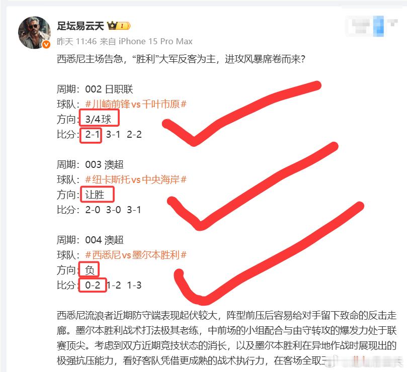 现在早场韩澳已经发车,全北现代已经稳稳拿下了,咱们争取趁热打铁,再斩一波大组合!至于晚场的五大联赛“满汉全席”,老易已经死磕好数据,老规矩在置顶大家庭发车。