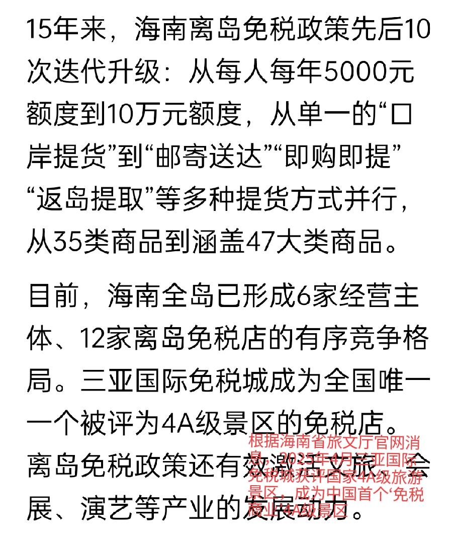 【三亚人注意!15年免税卖了2000亿,“即购即提”新政岛民最先受益,老牛给你盘一盘怎么买最划算】朋友们好啊。前两天我哥们刚从海口美兰机场离岛,在免税店买了一堆东西直接带上飞机了,回来就跟我嘚瑟:“老牛,现在岛民买东西太方便了,买了就拿走,再也不用跑一趟提货点了!”