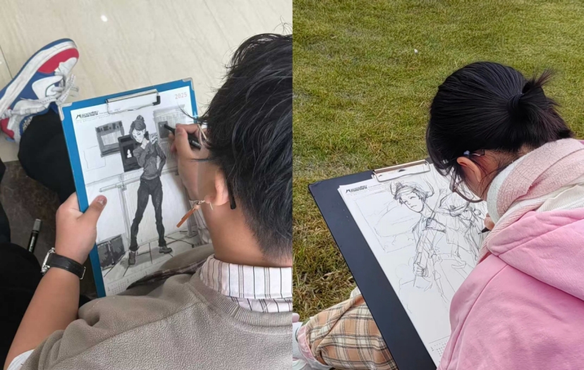 2025年10月31日,成都汇学益科技有限公司,受西华大学美术与设计学院邀请,参与西华大学现场速写大赛。(图为美术与设计
