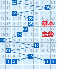 再来看一下蓝球基本走势,2尾是0-1-2的标准斜连号,因此02、12也值得考虑。1-5-9尾也是斜连走势,蓝球9可以说是明码,但这个走势一般不给,加上很多人在追逐蓝球9,所以个人的意见是不予考虑。