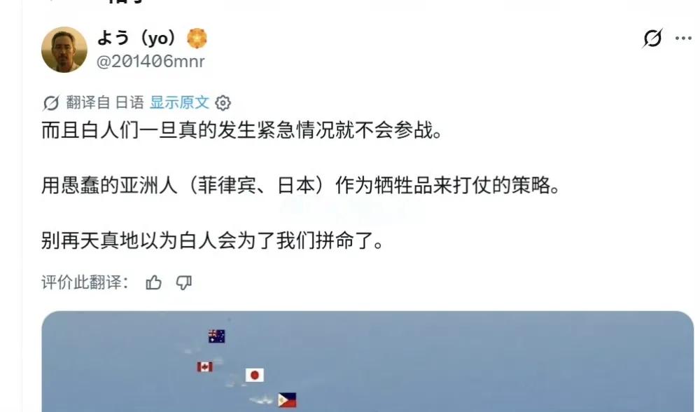 这位日本网友真是人间清醒,看得很透。可惜,像这样看透本质的日本人太少了,大多数还以为右翼说的是真的,一旦有事洋大人会来帮日本,为日本卖命。