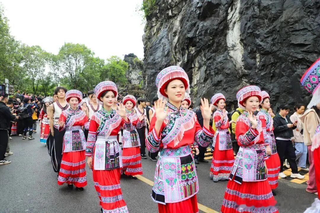 已刹拢兴文!坐等花山节热闹拉满🤭本届兴文苗族花山节,4月25日至4月28日正在石海景区火热上演。作为川南重量级非遗盛会,苗寨盛装齐聚,情歌对唱、爬花杆、斗牛赛马氛围感十足。拦门酒、高山流水、特色长桌宴,沉浸式解锁地道苗乡烟火。