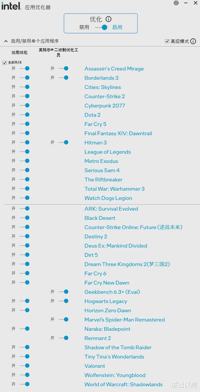 ▼随着这代处理器一起发布的,还有一个APO优化软件,这个软件可以通过一些优化,让处理器在特定游戏和应用中,有更好的性能表现。