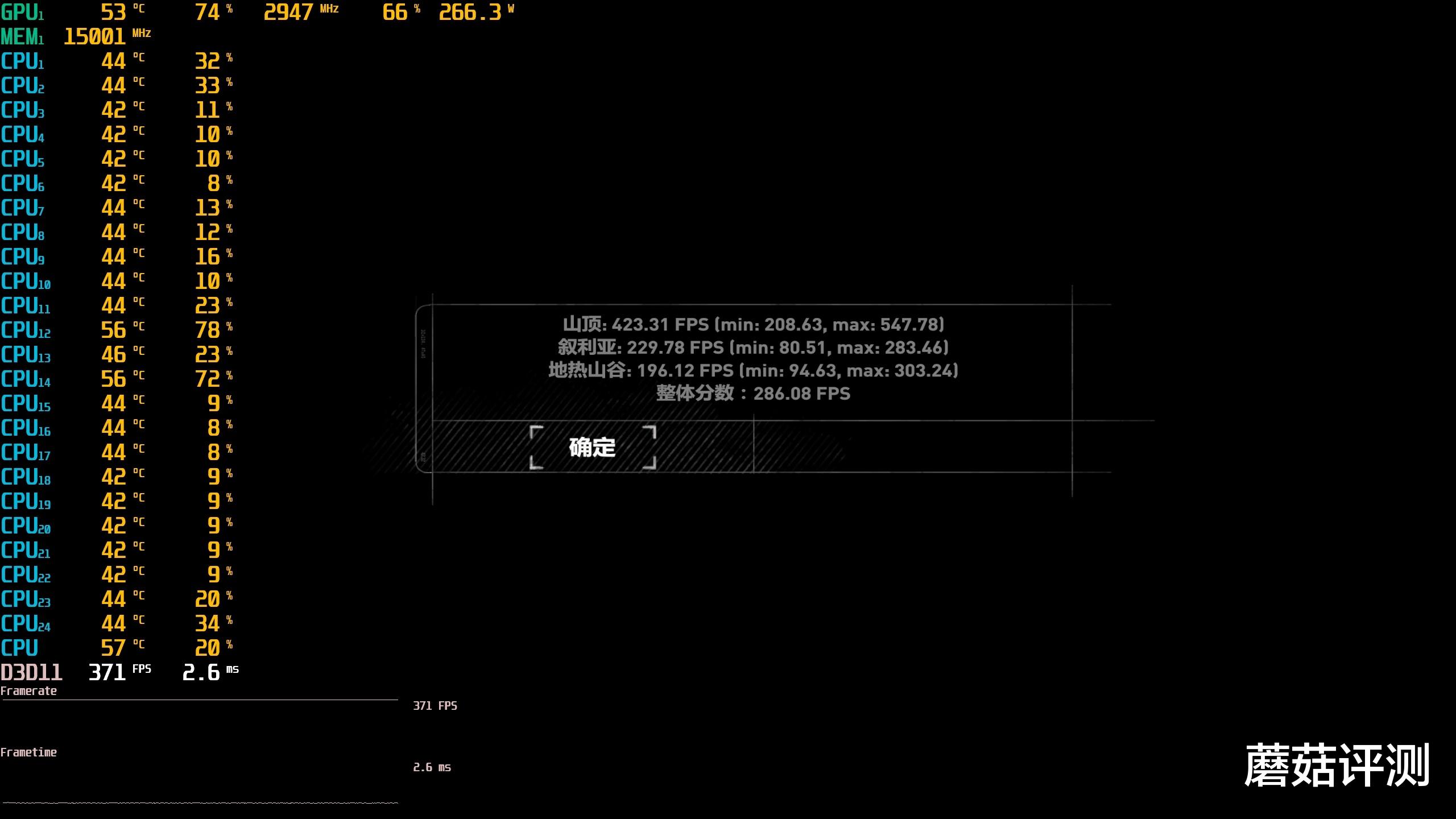 ▼古墓丽影,2K分辨率,高画质,整体的平均游戏帧数在286.08帧,非常流畅。