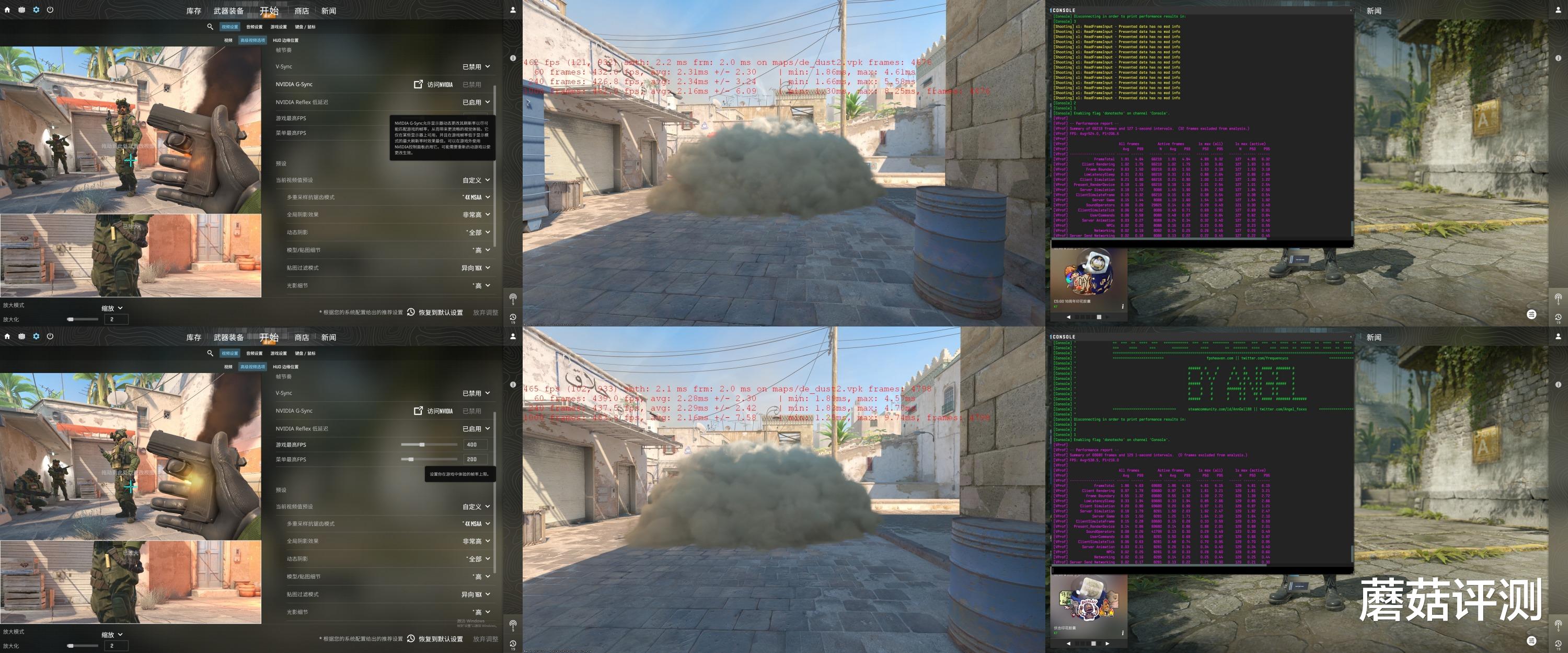 ▼CS2,2K分辨率,高画质,开启优化之后,平均游戏帧数从524提高到538.5,1% Low帧从206.6提高到216。