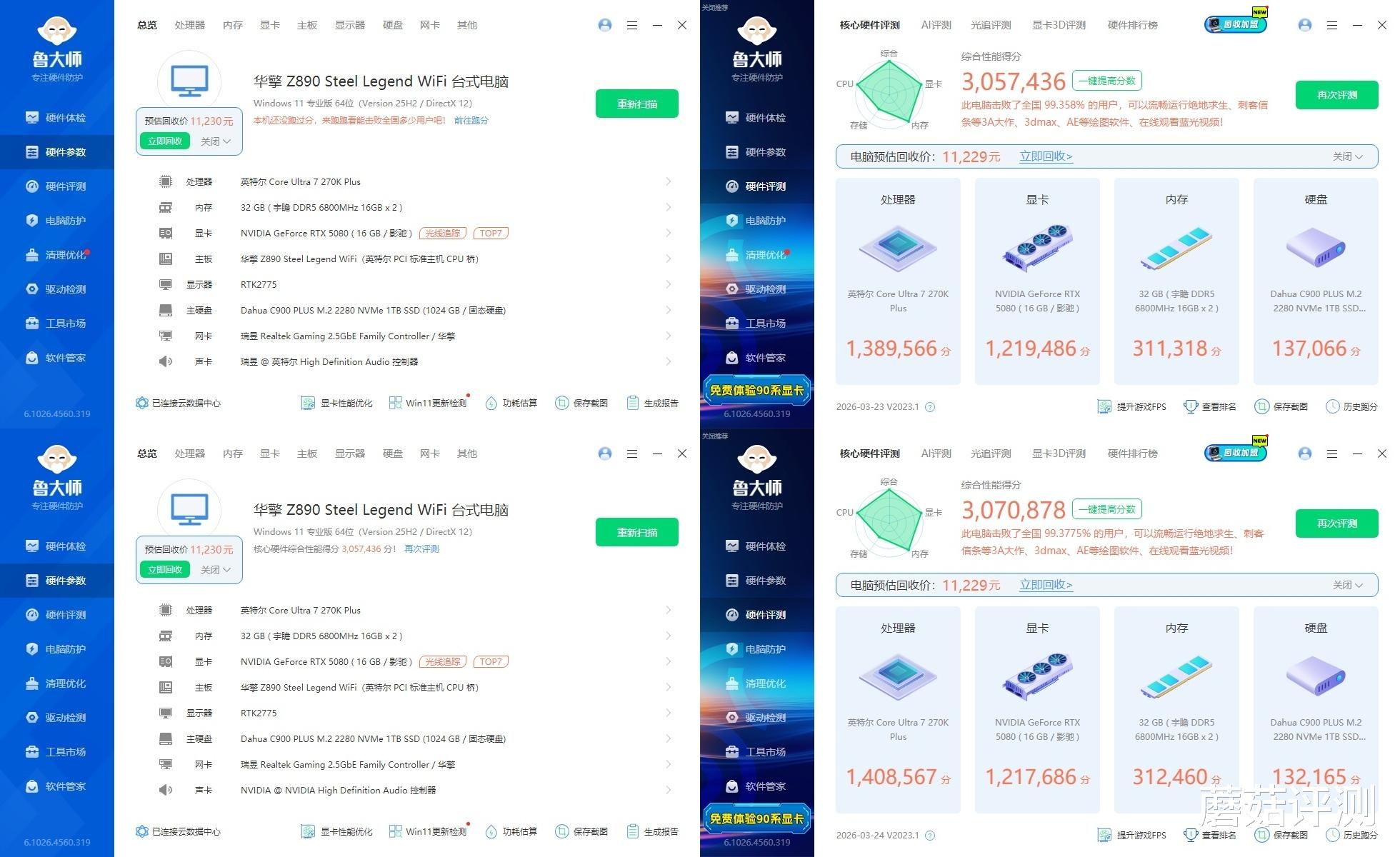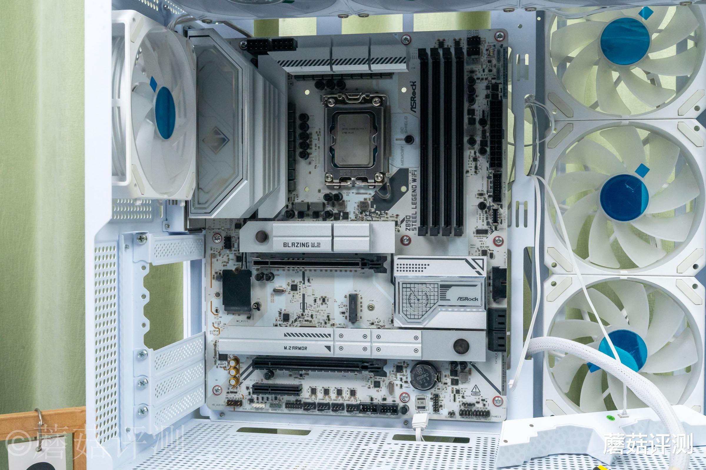 ▼主板用的是华擎的Z890 Steel Legend WiFi 钢铁传奇主板,这块主板的性价比、颜值、用料表现均非常出色。