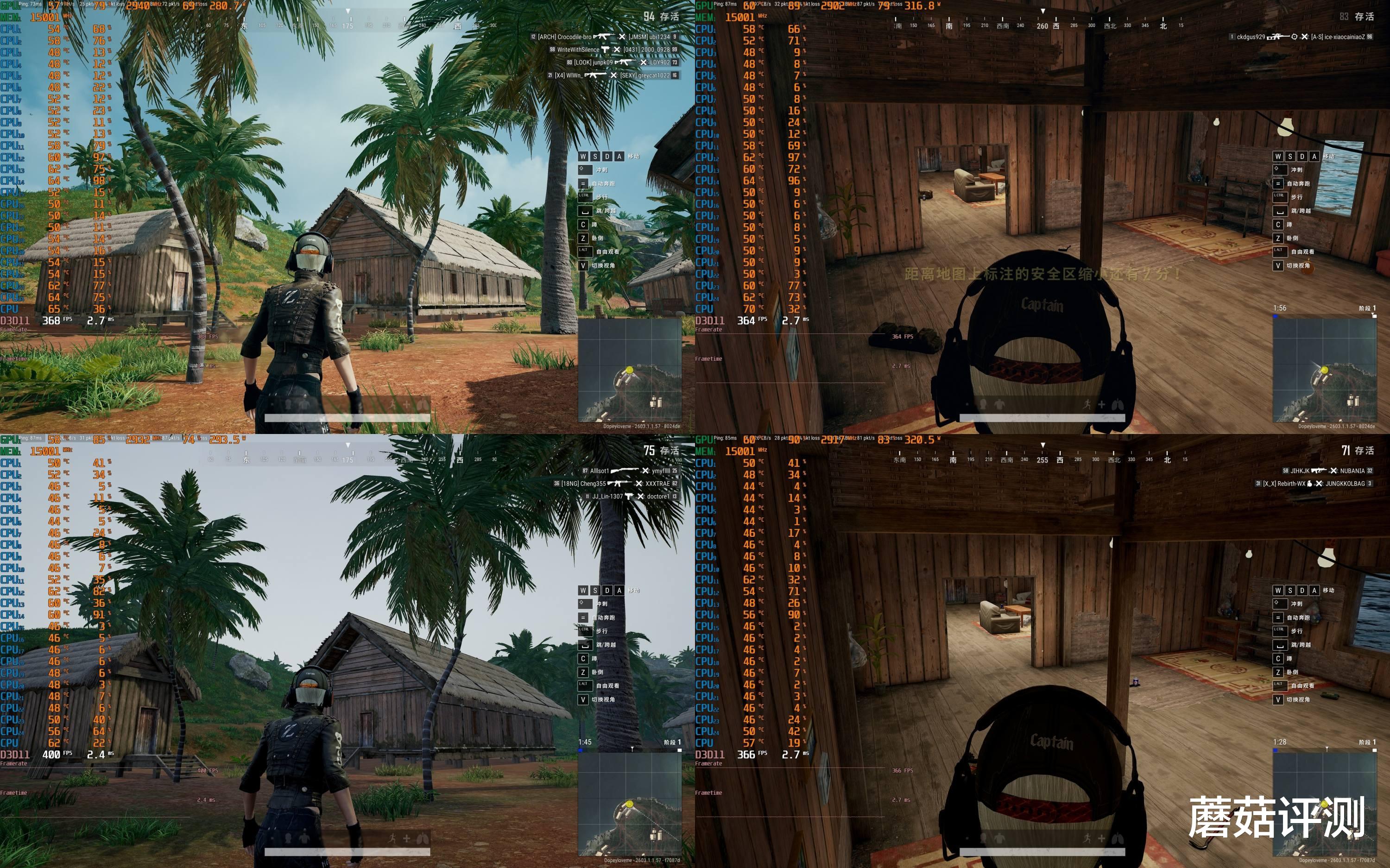 ▼绝地求生PUBG,2K分辨率,高画质,室外游戏帧数从368提高到400,室内游戏帧数从364提高到366。