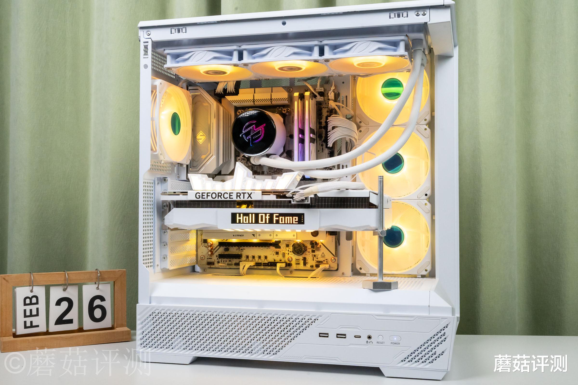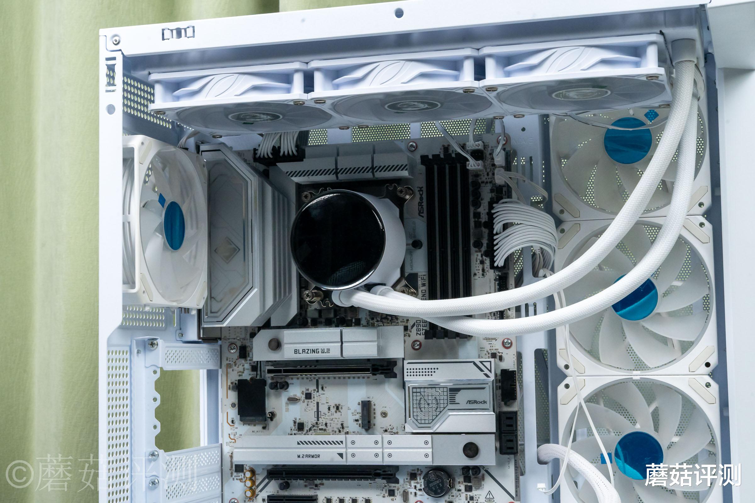 ▼机箱是微星的131L白龙,采用海景房设计,侧面和前侧有大面积的侧透玻璃。