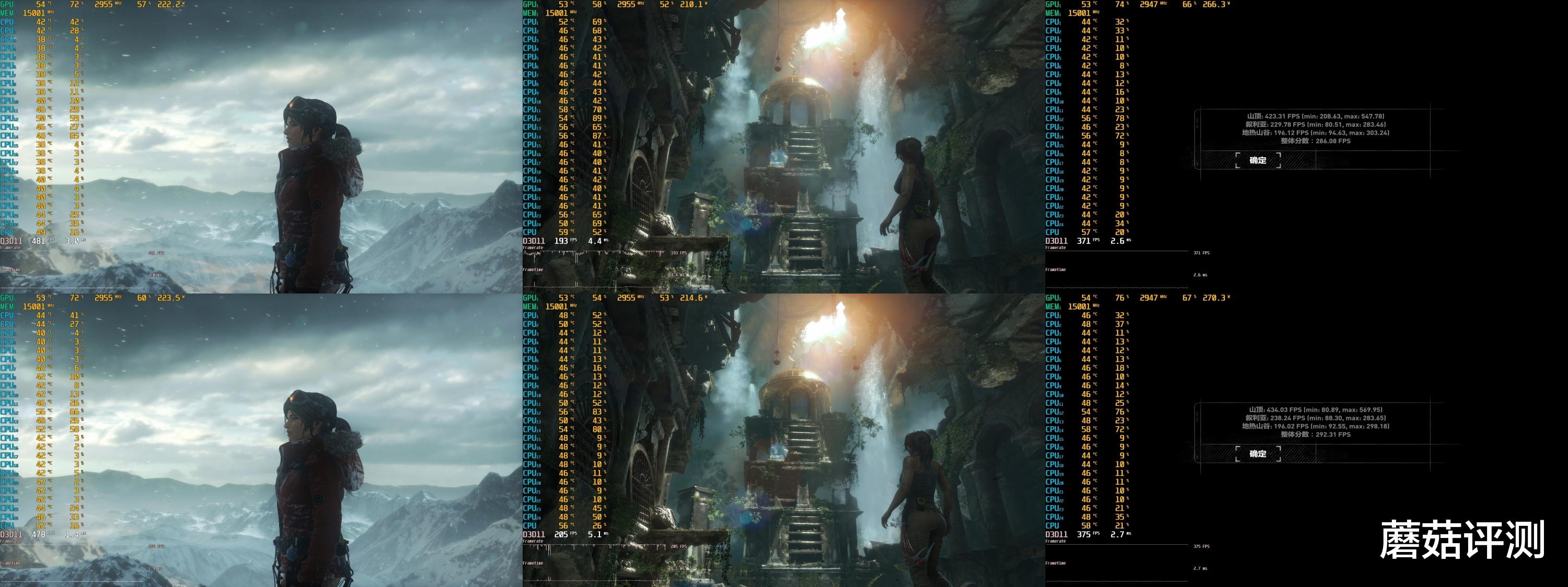 ▼古墓丽影,2K分辨率,高画质,整体平均游戏帧数从286.08帧提高到292.31帧,提升明显。