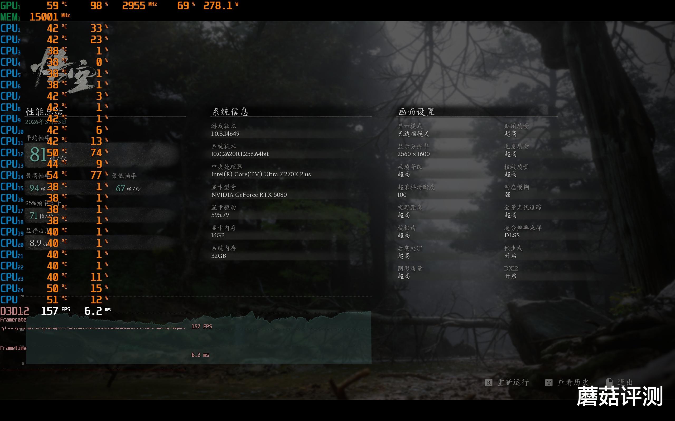 ▼黒神话悟空,2K分辨率,画质超高,光追超高,超采100,平均游戏帧数保持一致,均81帧左右。