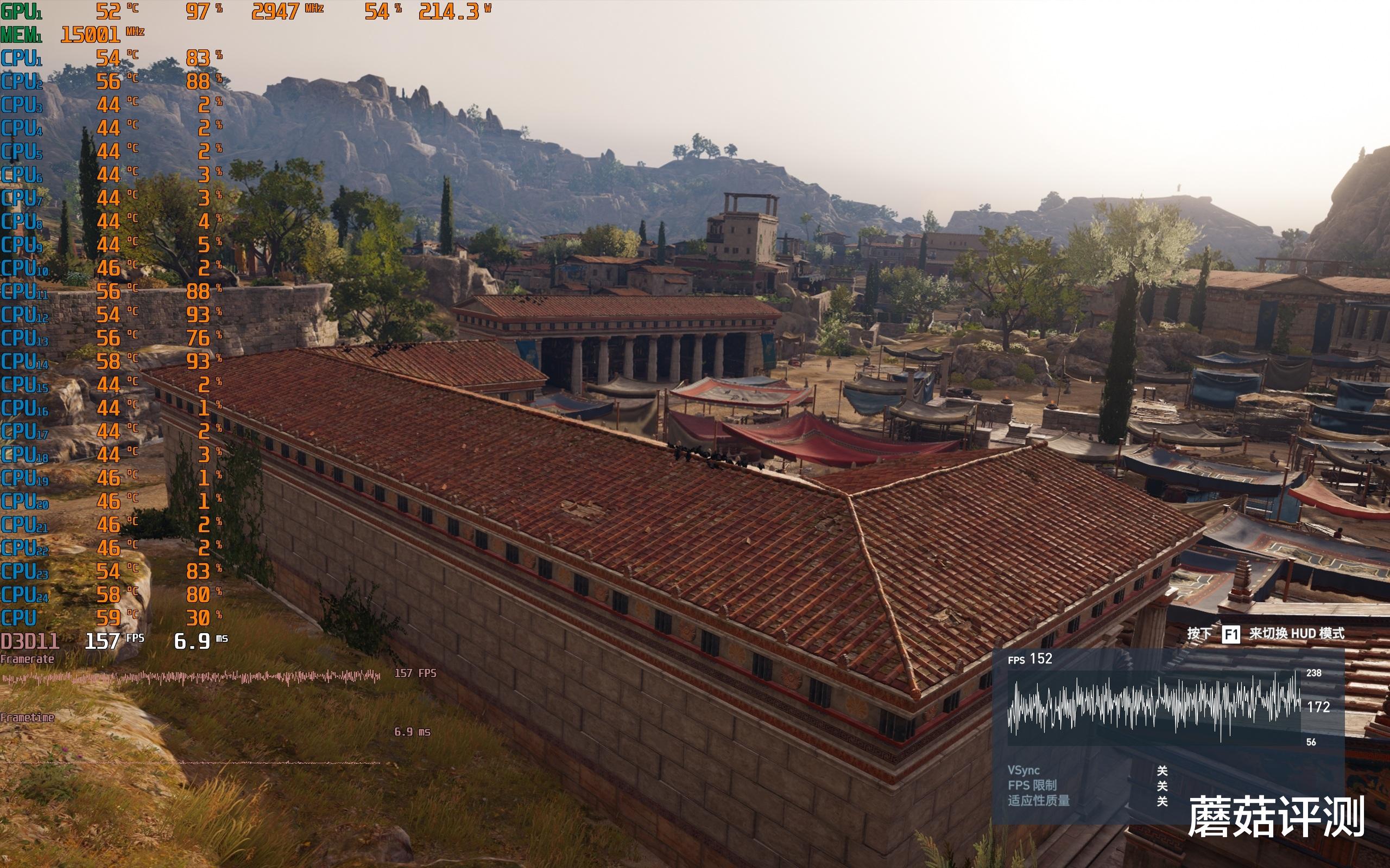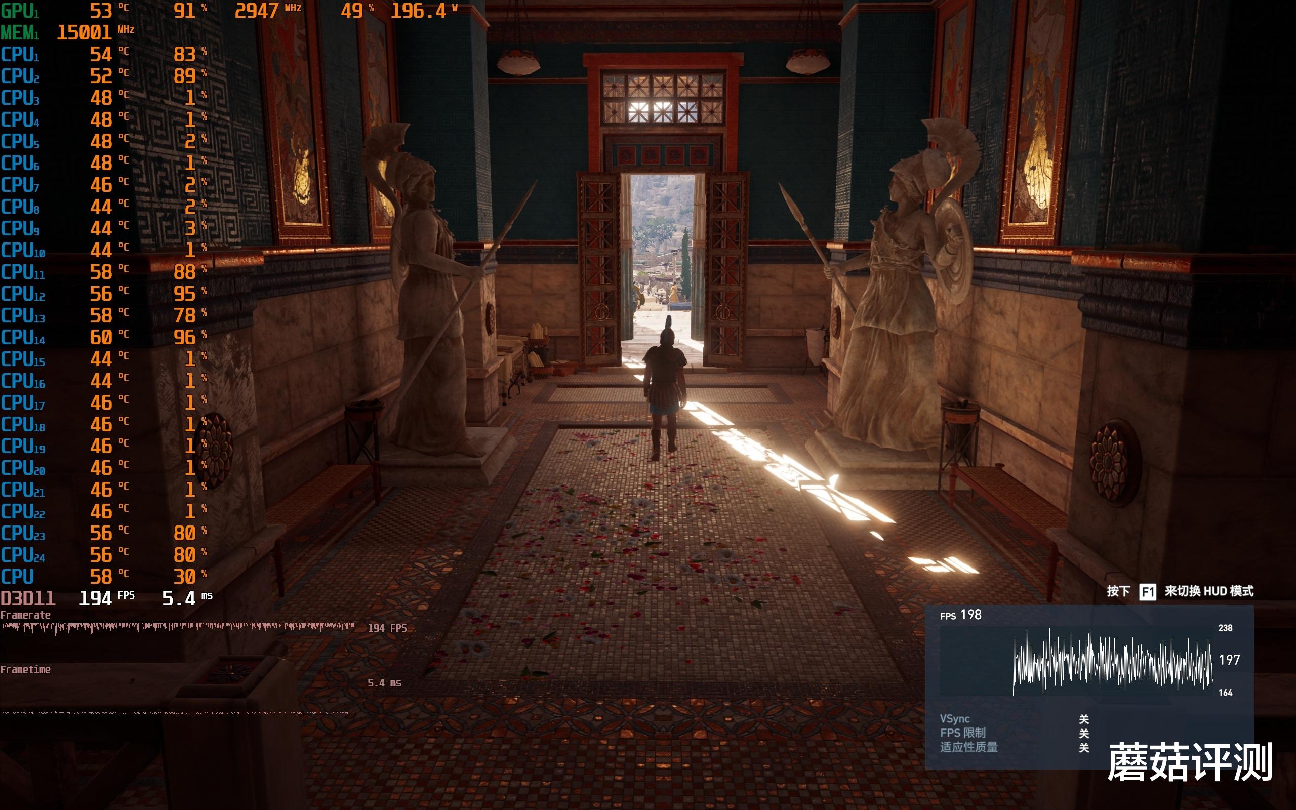 ▼众生平等奥德赛,2K分辨率,极高画质,体积云最低,走廊游戏帧数194,室外游戏帧数157,平均游戏帧数在160帧左右。