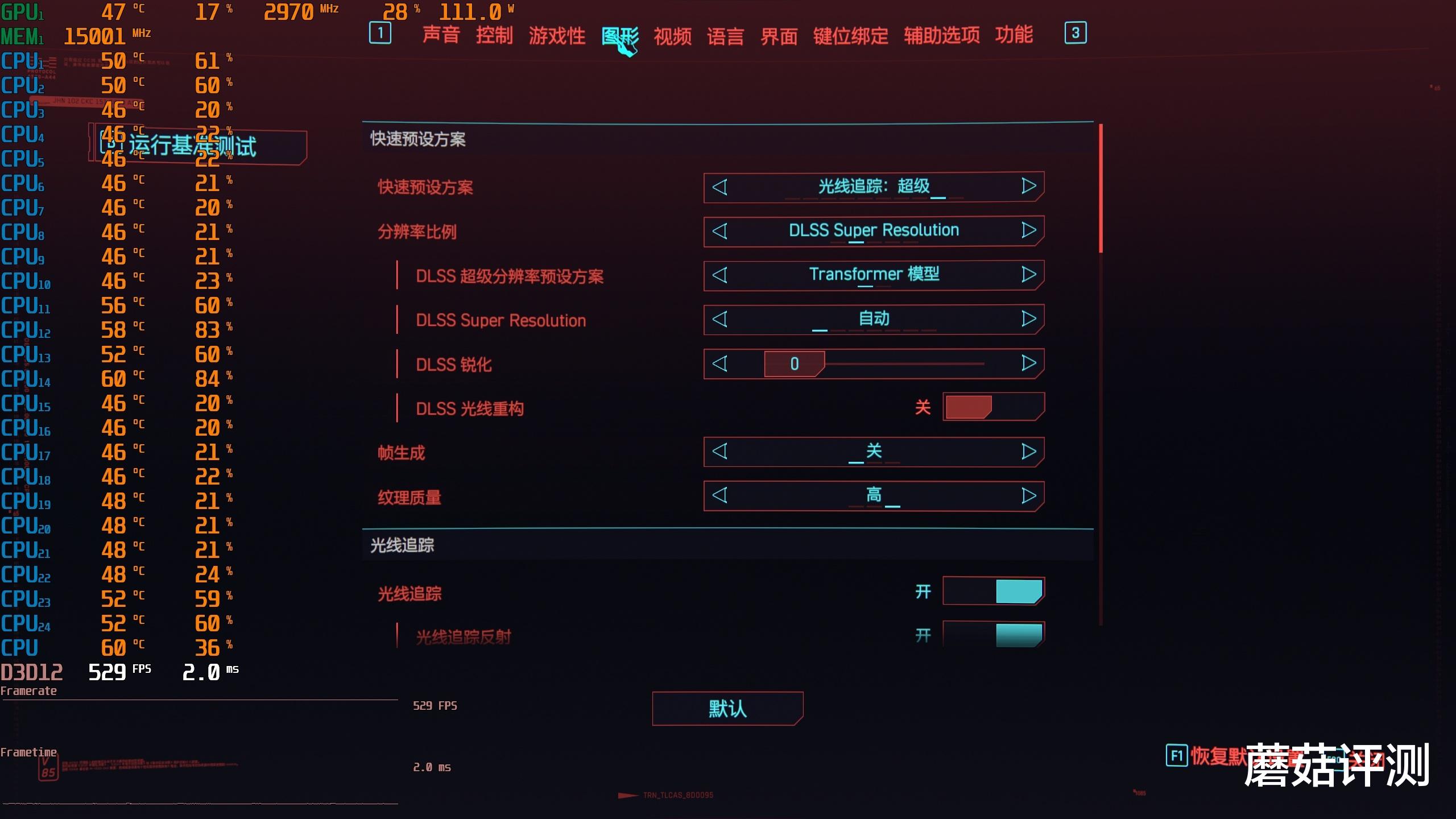 ▼赛博朋克2077,光追超级画质,大力水手DLSS自动,拼好帧关闭,平均游戏帧数从127.56提高到127.72。