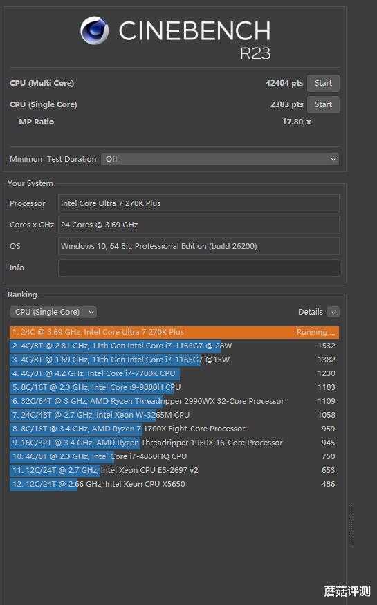 ▼跑个CineBench R23,单核得分2383,多核得分42404。