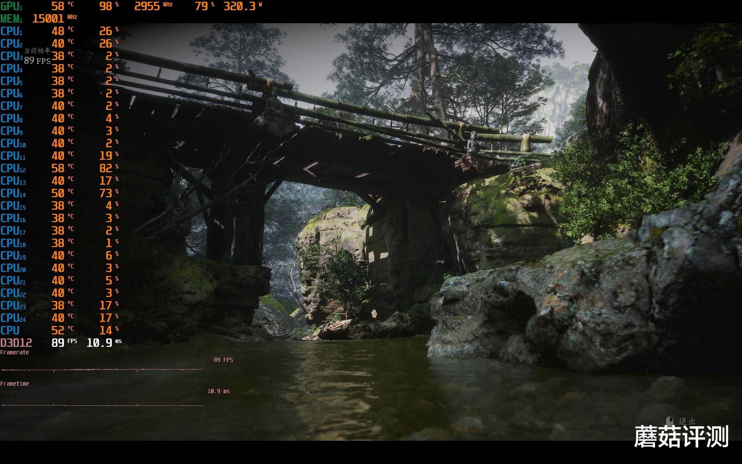 ▼黒神话悟空,2K分辨率,光追超高,画质超高,超采100。小桥处的游戏帧数在89帧左右,平均游戏帧数81帧,表现不错。