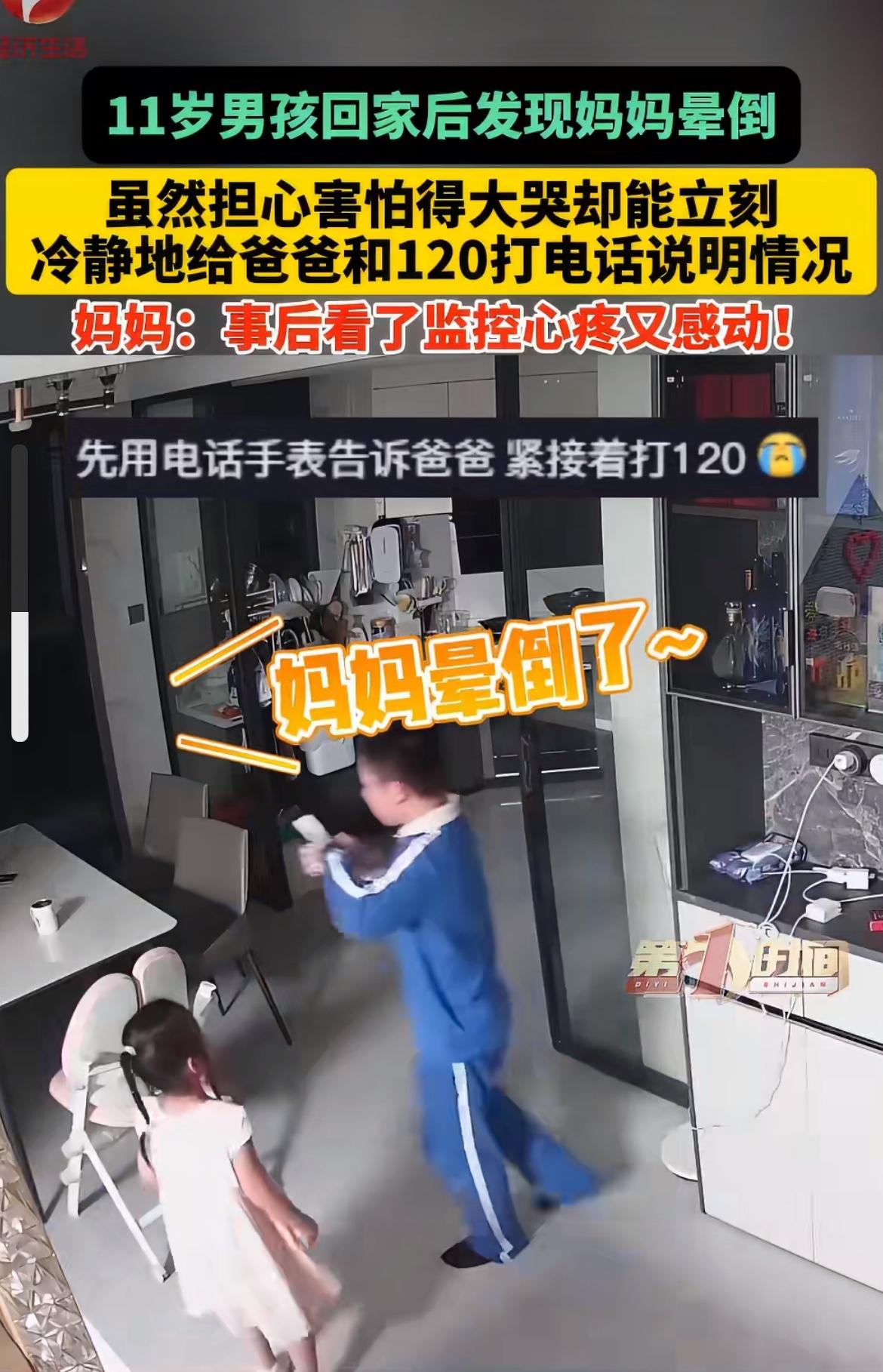 11岁男孩带妹妹放学回家,一开门看见妈妈晕倒在地,吓得当场哇哇大哭,结果哭归哭,手里动作一点没乱!给爸爸打、给120打,地址状况说的门儿清,不到15分钟就把救援等来了。