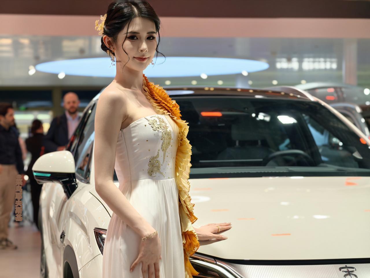 模特身着的高级定制服装,实际上很有考究。活力、典雅、年轻、现代……不同的风格,分别契合了各自不同的品牌、车型。