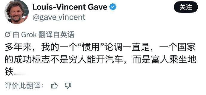 反观现在的X上,老外们已经在用“富人可以坐地铁”来作为判断一个国家是否成功的标志了。